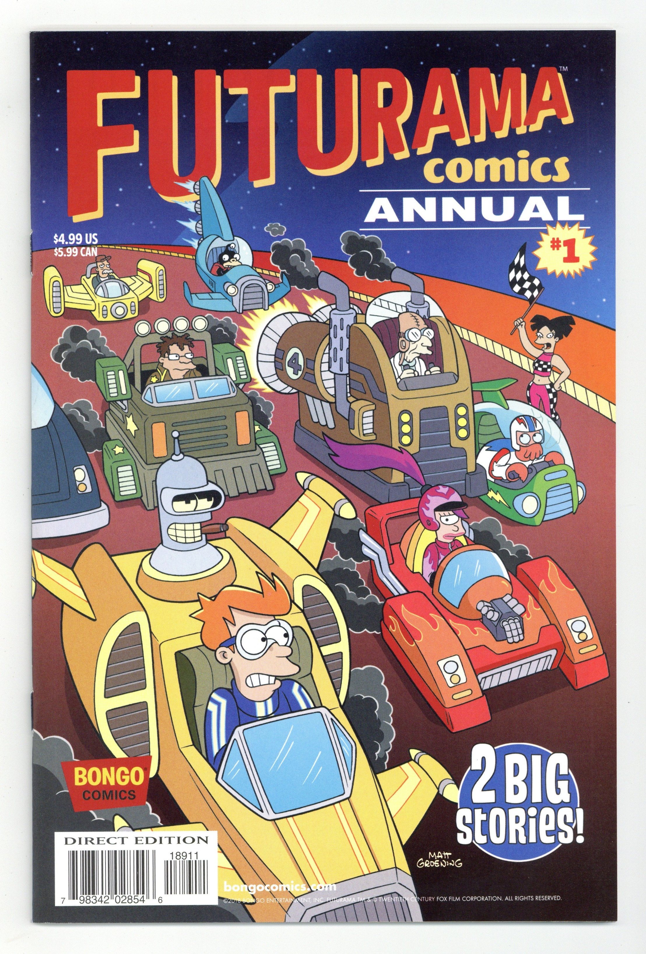 $20.00Written by Ian Boothby. Art by James Lloyd and Mike Rote. Cover by James Ho and Nathan Kane. Futurama is back! And with a double issue/double feature! First, the Planet Express crew heads to a desert planet world to take part in a decadent partying event called Burning Mom, where a giant wicker statue of Mom will be burned in effigy. But the event sponsor, Mom herself, has plans to use the proceedings to even the score and rid the world of the revolting revelers. Then, while helping Leela with some volunteer work at the Orphanarium, Fry tells the children the bedtime tale of Bendocchio, the little robot who wishes to be a real meatbag. And with a little help from the Bluetooth Fairy and the keeper of his conscience, Jiminy Circuits, he may very well get his wish! 44 pages, full color. Cover price $4.99.