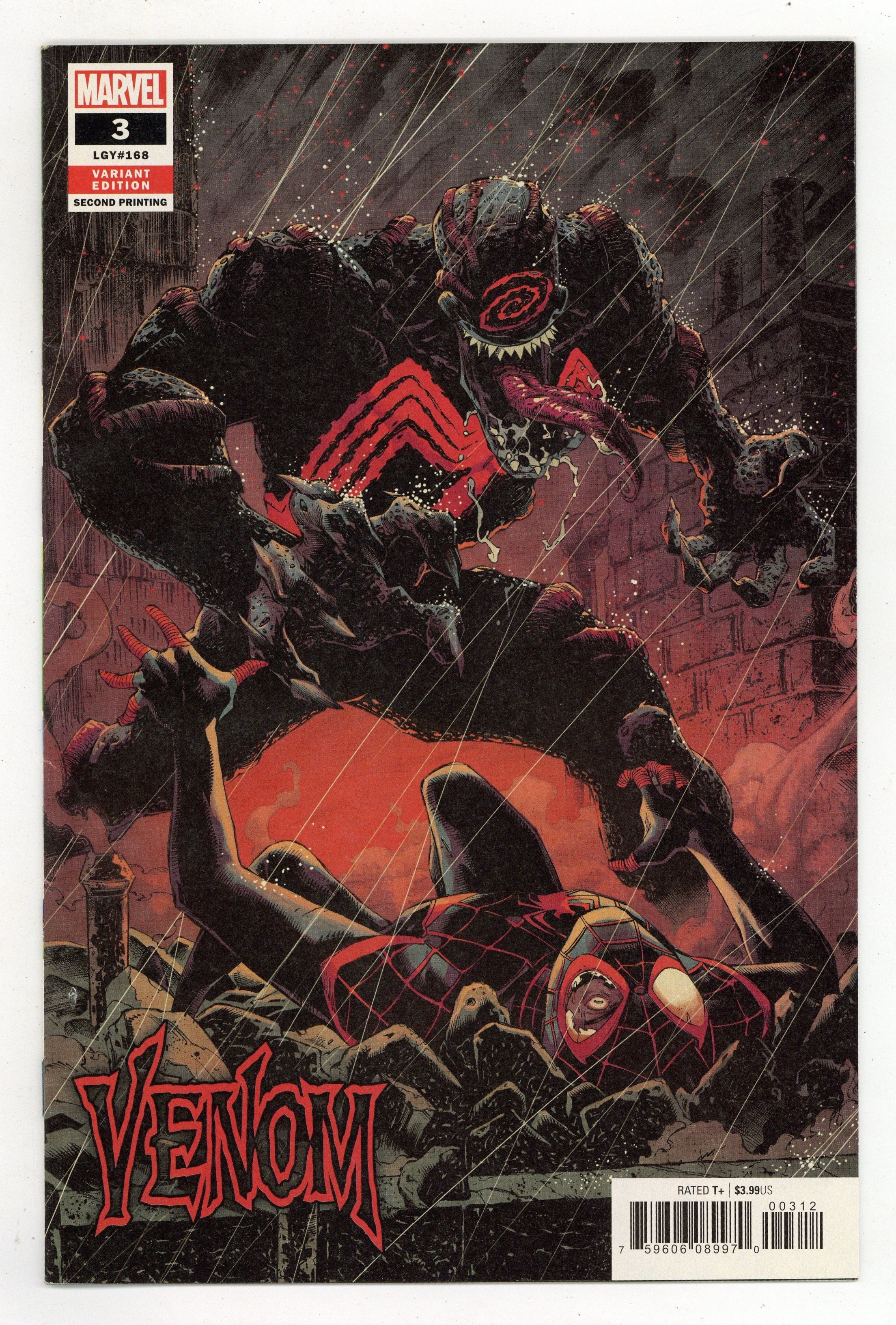 2nd Printing. Written by Donny Cates. Art and Cover by Ryan Stegman. Still recovering from his injuries, Eddie Brock - the Wicked Web-Slinger known as VENOM - has to defend NYC against the most powerful foe he's ever faced! The only thing standing in his way? Miles Morales…SPIDER-MAN! Though Eddie and the symbiote have no qualms with this particular web-slinger, the same can't be said for Miles' feelings about Venom… 28 pages, full color. Rated T+ Cover price $3.99.