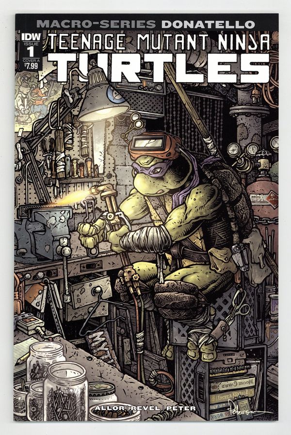 Published Sep 2018 by IDW Publishing.$15.00Written by Paul Allor. Art by Brahm Revel. Cover by David Petersen. TMNT returns to its roots with new spotlights on individual Turtles, but this time they're extra-large! Donatello understands that more is at stake than his brothers realize. In order to prepare for the coming conflict, Don will aim to repair his relationship with his mentor Harold… and his malicious robotic counterpart Metalhead! 48 pages, full color. Mature Readers Cover price $7.99.