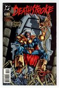 Tags: Deathstroke$4.80"The Shape of Fears to Come!" Guest-starring Hawkman. Story by Marv Wolfman. Art by Sergio Cariello and Will Blyberg. In the aftermath of Deathstroke Annual #4, Rose glimpses into the future. In the distant future the long-lived Deathstroke has taken over the world and rules with an iron fist. His only rival is the avatar of the Hawk God himself - Hawkman! Cover price $2.25.