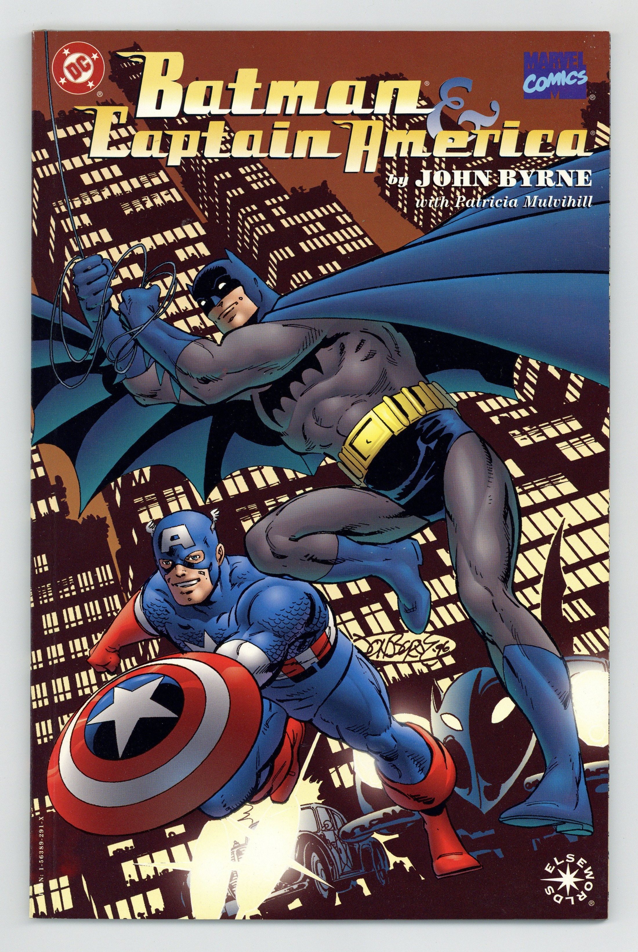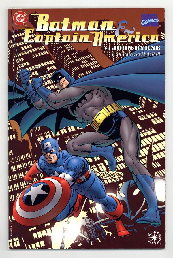 Tags: Batman, Captain America$18.75Elseworlds. Writer/artist John Byrne reunites two of the key heroes from DC Versus Marvel in the era that created them both, the dark days of World War II. In this Prestige Elseworlds one-shot in which Byrne uses a cool, eye-catching, retro style, diabolical Nazis and criminal madmen stand poised to overthrow the free world. The World's Greatest Detective and the Sentinel of Liberty represent the common man's final hope! Written, illustrated and cover by John Byrne. FC, 64 pg. Prestige Format. Cover price $5.95.