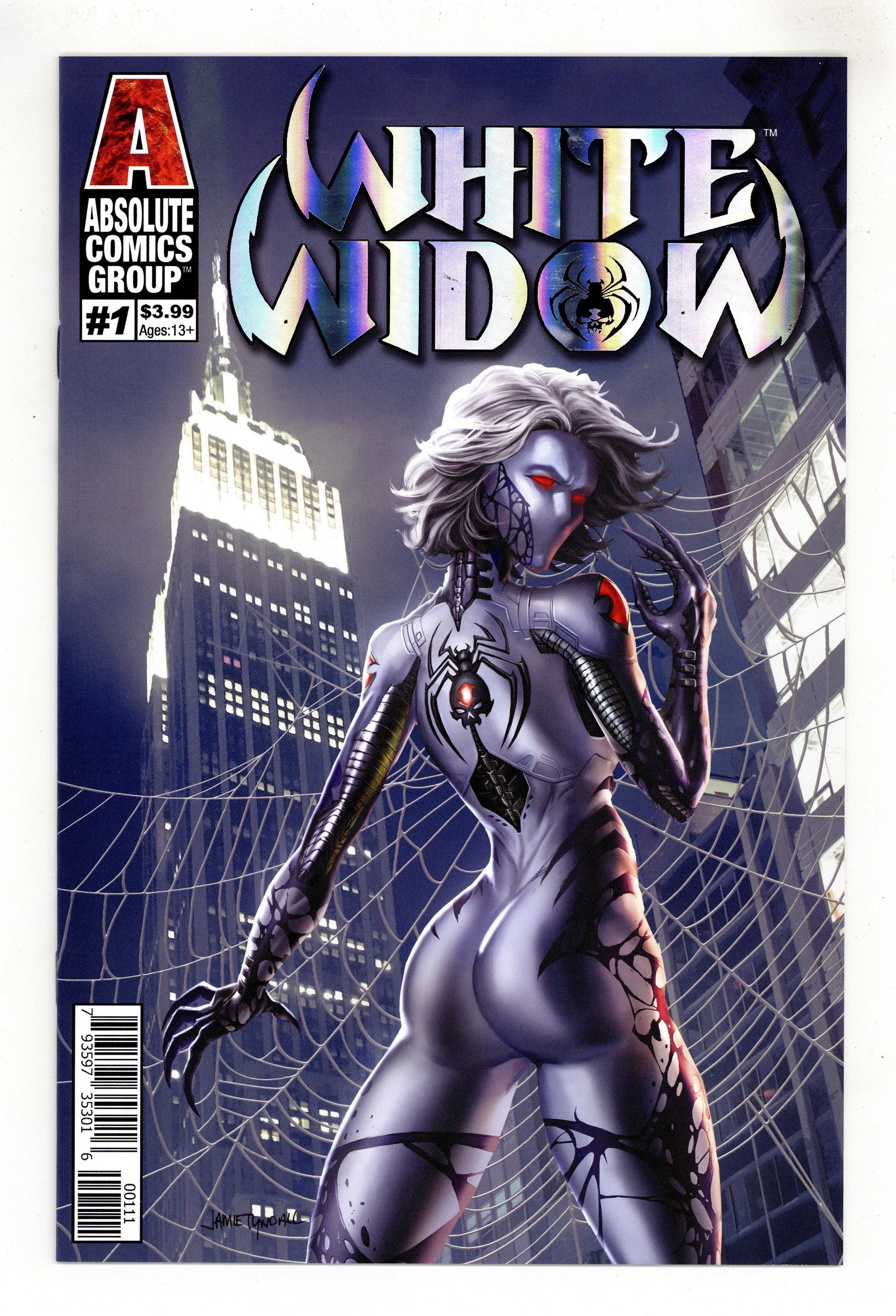 Published Oct 2018 by Absolute Comics Group.$14.00Written by Benny Powell. Art by Iwan Nazif and Jamie Tyndall. Cover by Jamie Tyndall. Gabrielle Garcia was a typical American girl going to college to follow in her father's footsteps - or so she thought. One night, her father barged into her dorm room, suffering from a fatal gunshot, and injected her with… something. That was the moment she became the White Widow. 24 pages, full color. Rated T+ Cover price $3.99.