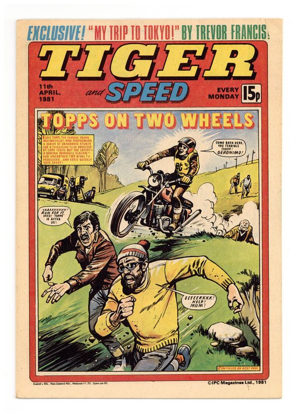 April 11, 1981. This issue features: "Topps on Two Wheels", "Johnny Cougar", "Billy's Boots", "File of Fame", "Death Wish", "Billy's Sports School", "Hot-Shot Hamish", "Skid Solo", and "Nipper". 8" x 11.5". 32 pages. Black and white.