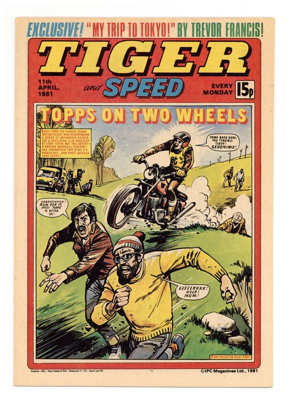 $7.49April 11, 1981. This issue features: "Topps on Two Wheels", "Johnny Cougar", "Billy's Boots", "File of Fame", "Death Wish", "Billy's Sports School", "Hot-Shot Hamish", "Skid Solo", and "Nipper". 8" x 11.5". 32 pages. Black and white.