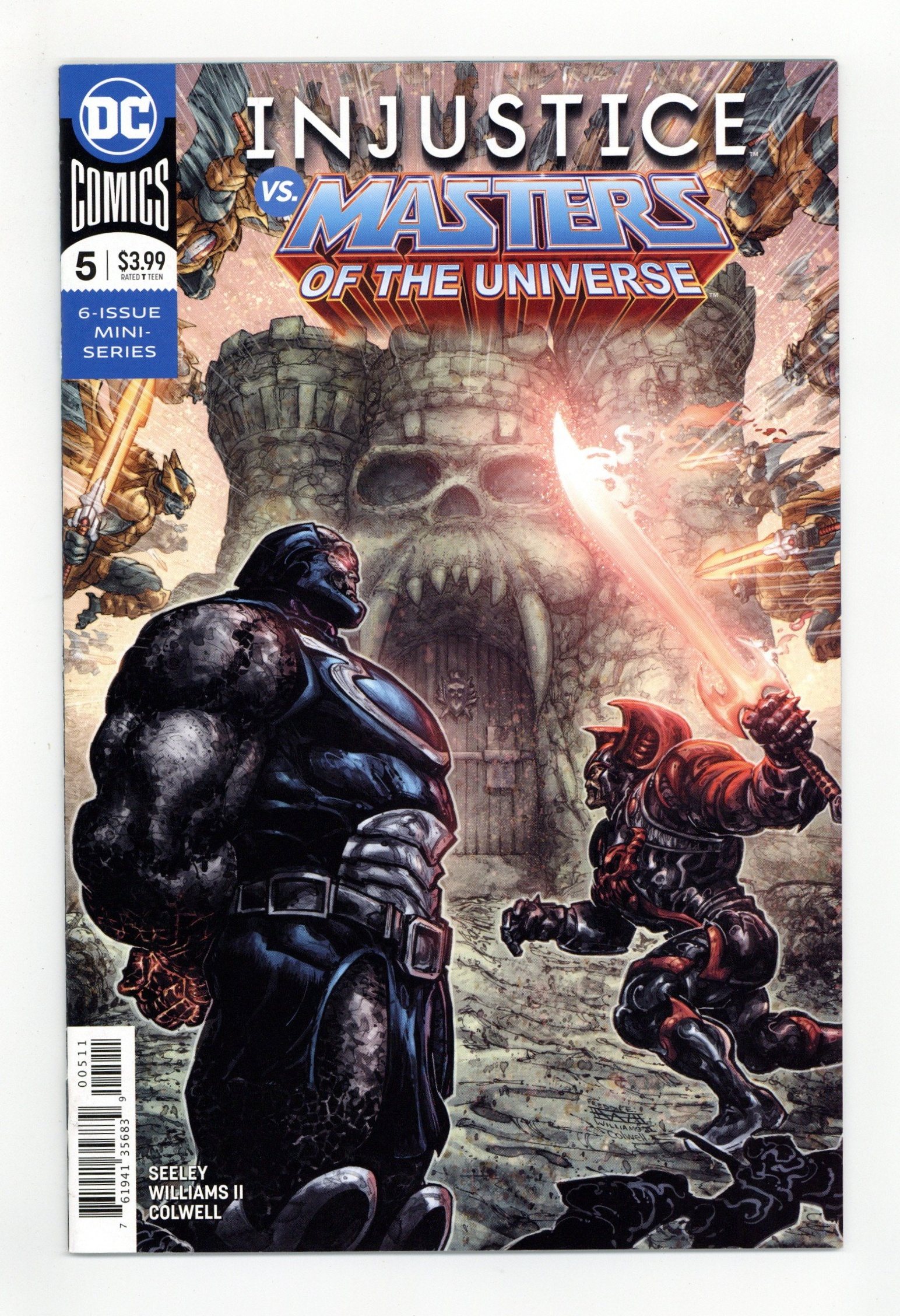 Written by Tim Seeley. Art and Cover by Freddie Williams II. Betrayed by Skeletor and fearing the power Darkseid gained in his attack on Castle Grayskull, Superman takes up arms with his old compatriots. But will their combined might be enough to win a battle against a foe armed with the Anti-Life Equation? 32 pages, full color. Rated T Cover price $3.99.