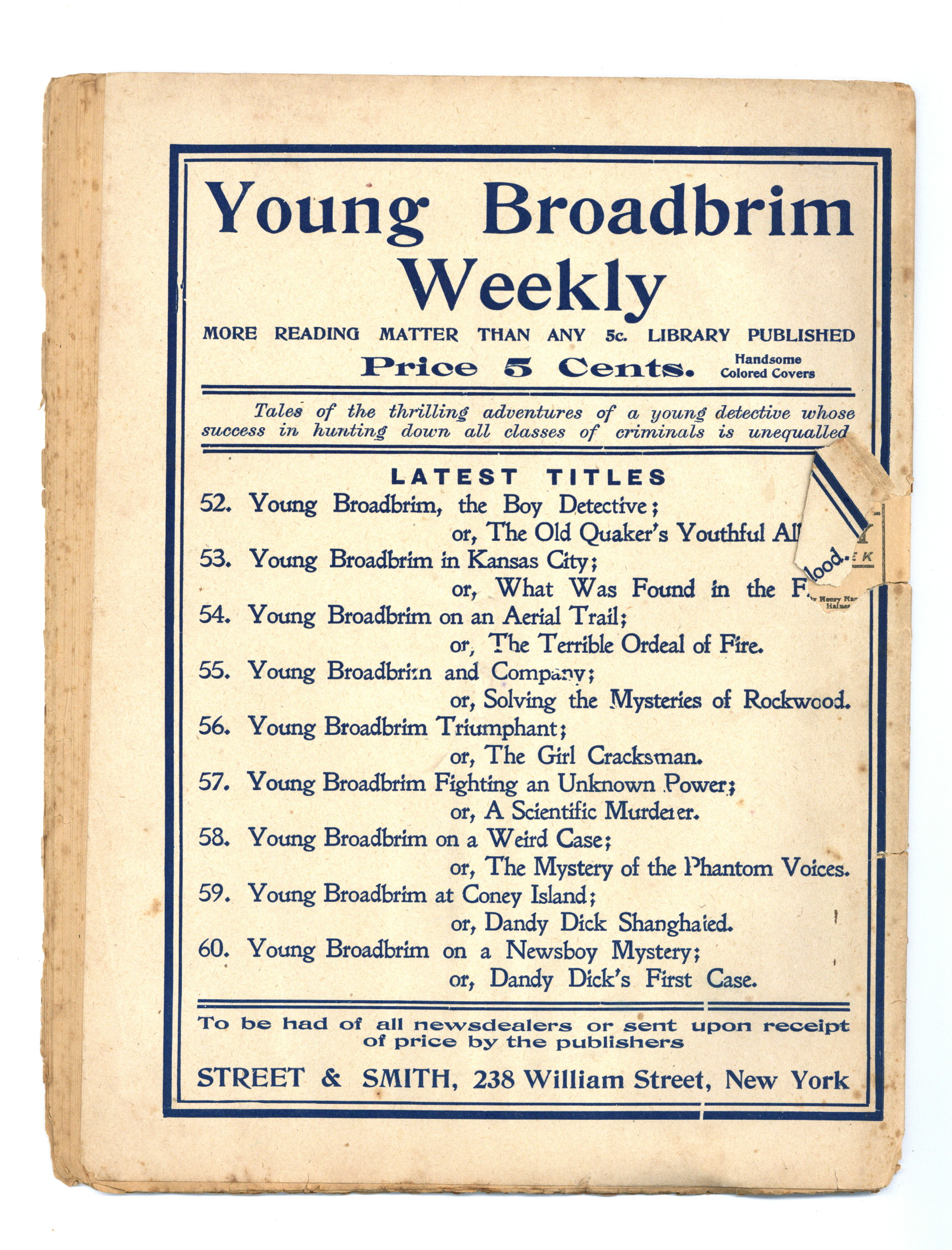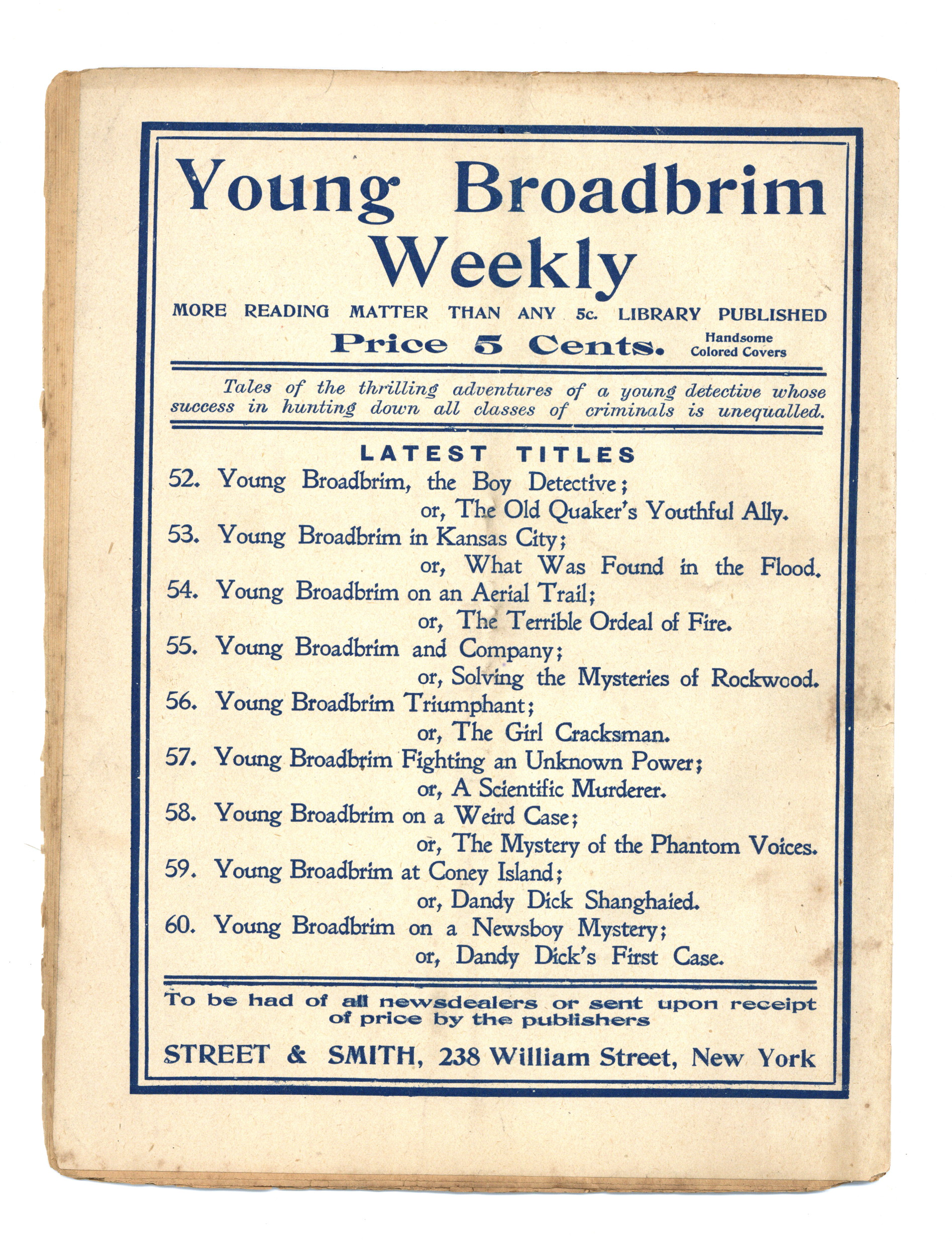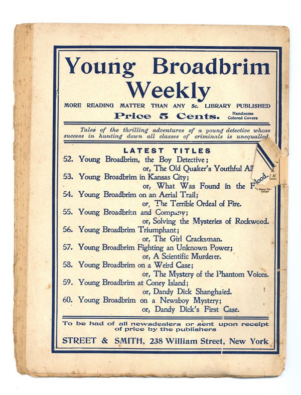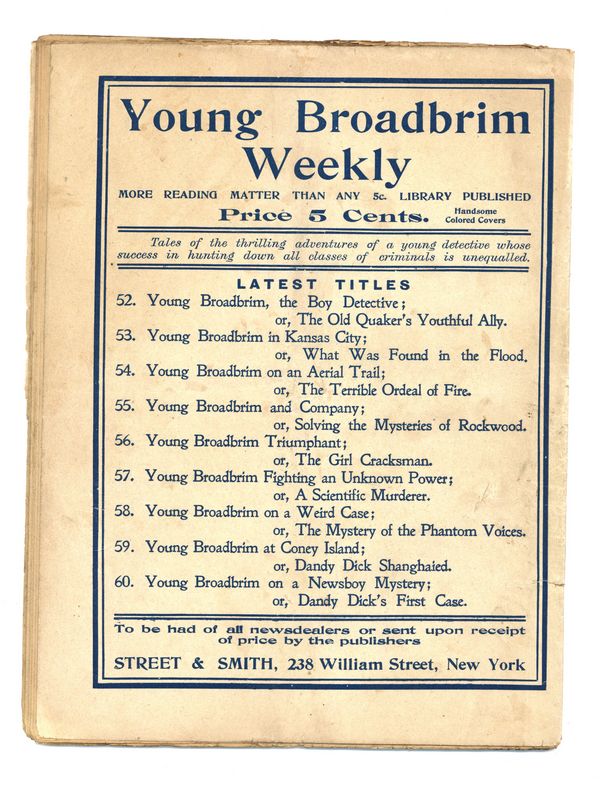 Published Dec 1903 by Street & Smith.$10.00- Staple rust: Slight.