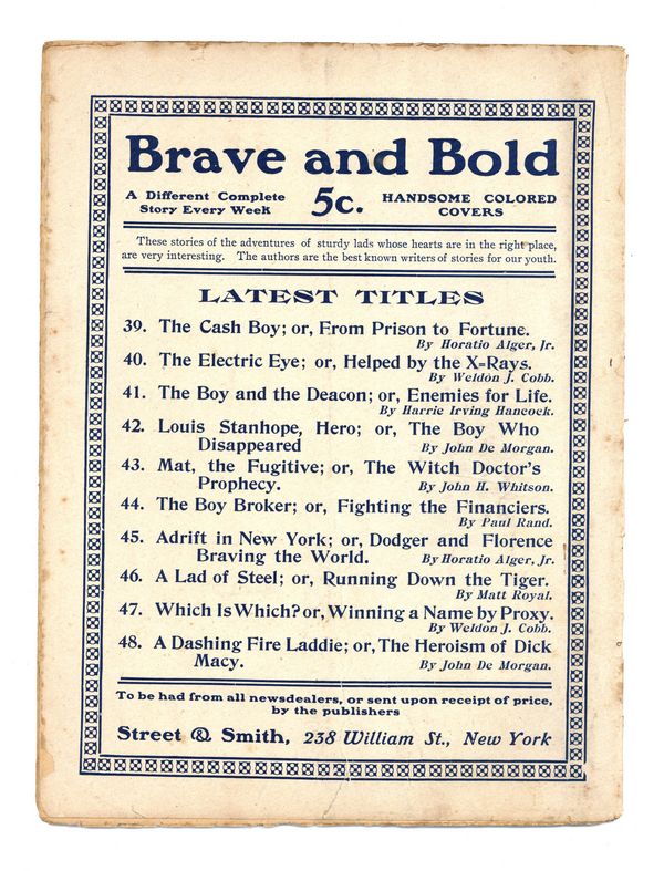 Published Feb 1904 by Street & Smith.$10.00- Staple rust: Slight.