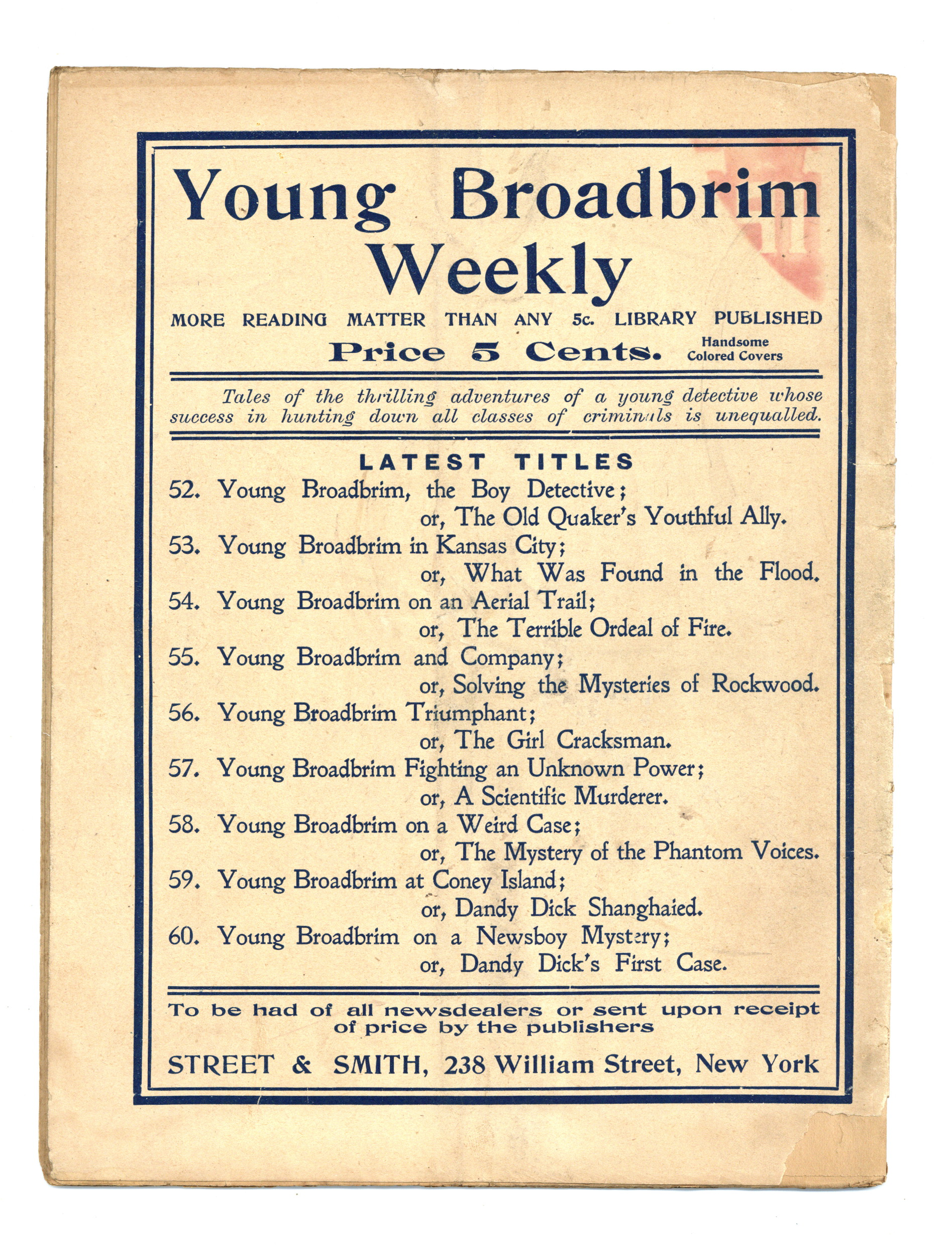 Tags: Pulp AdventurePublished Jan 1904 by Street & Smith.$9.00- Water damage: Moderate. Staple rust: Slight.