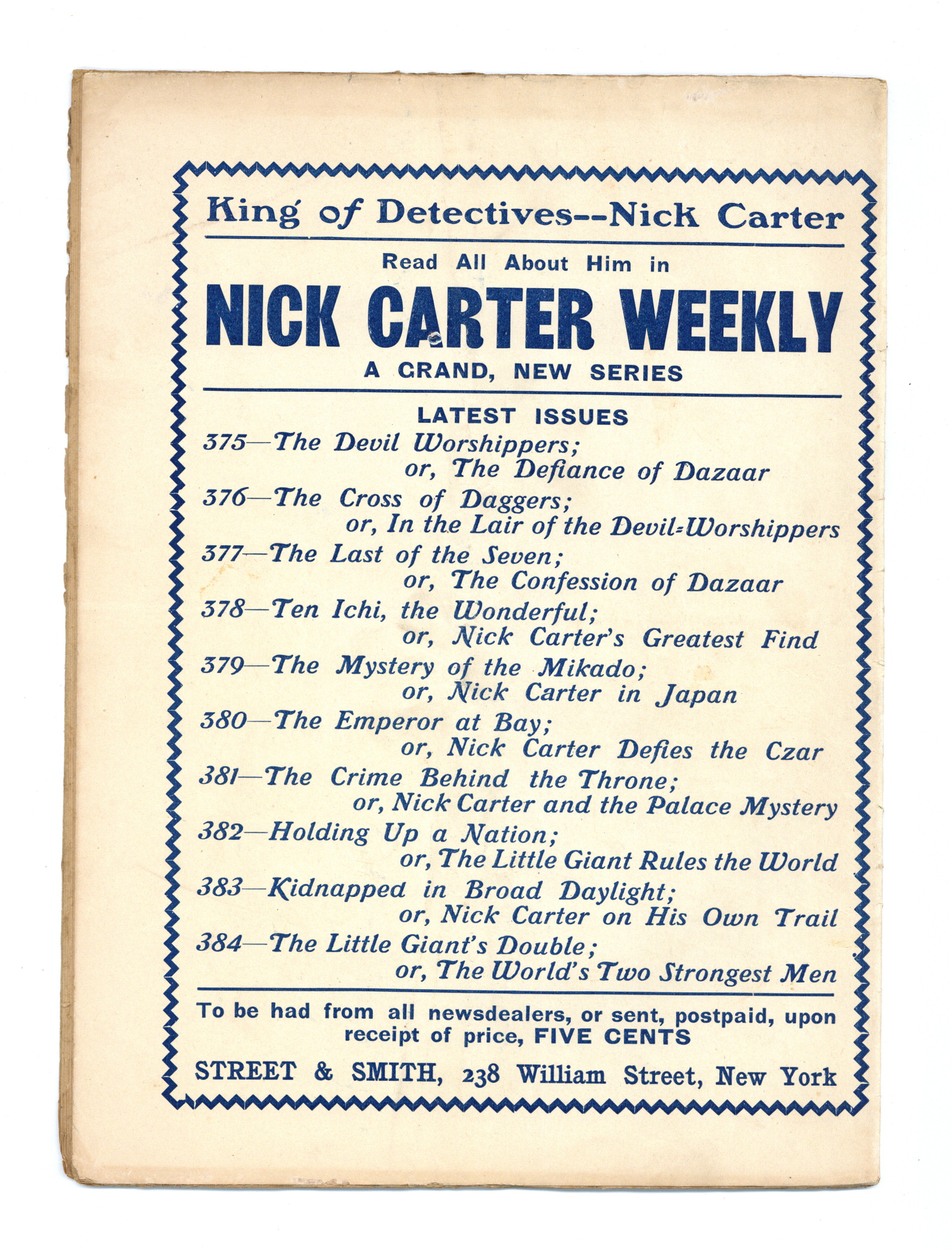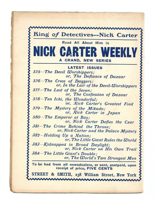 Published Apr 1904 by Street & Smith.$10.00- Water damage: Slight. Staple rust: Slight.