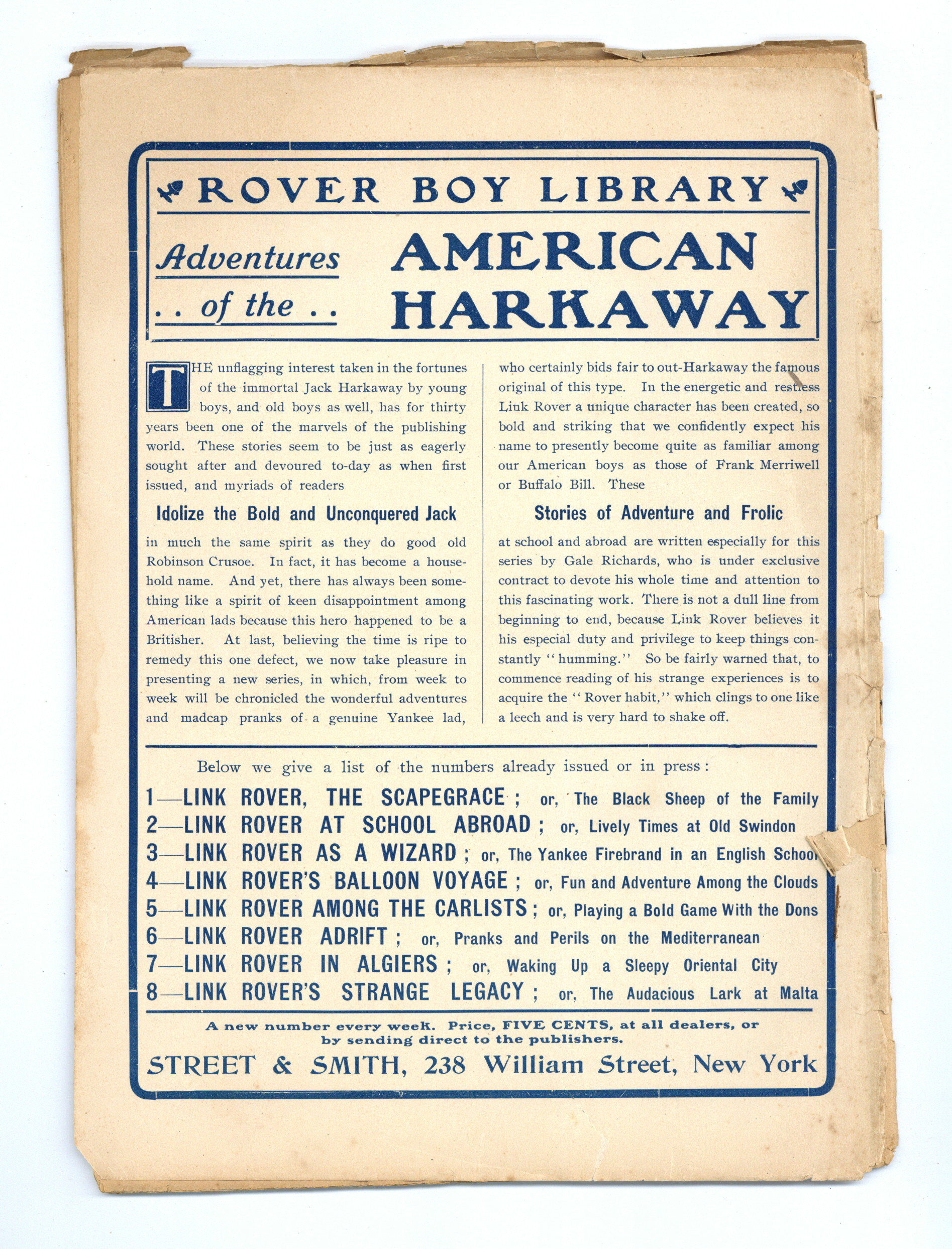 Tags: Pulp AdventurePublished Jan 1904 by Street & Smith.$9.00- Water damage: Moderate. Staple rust: Slight.