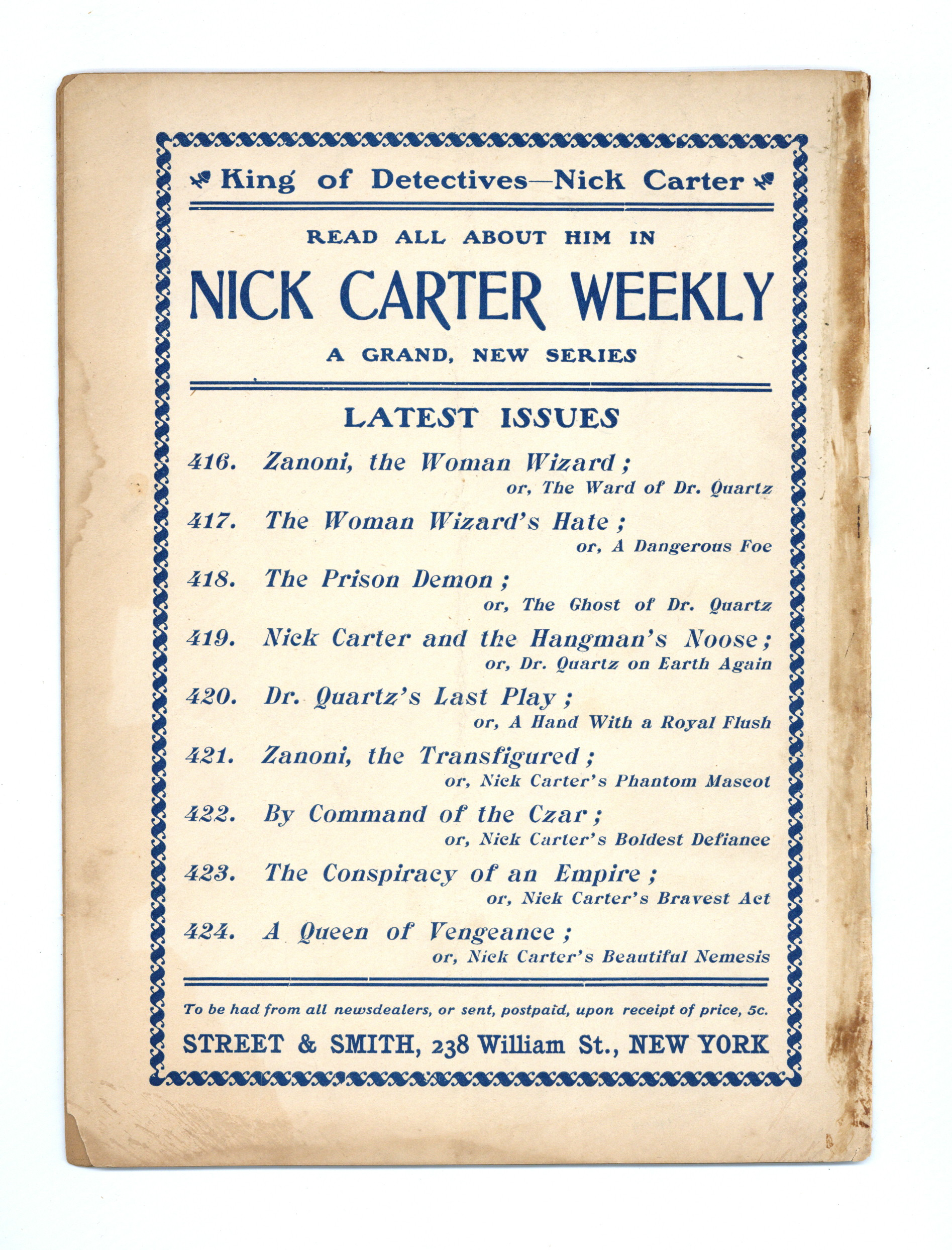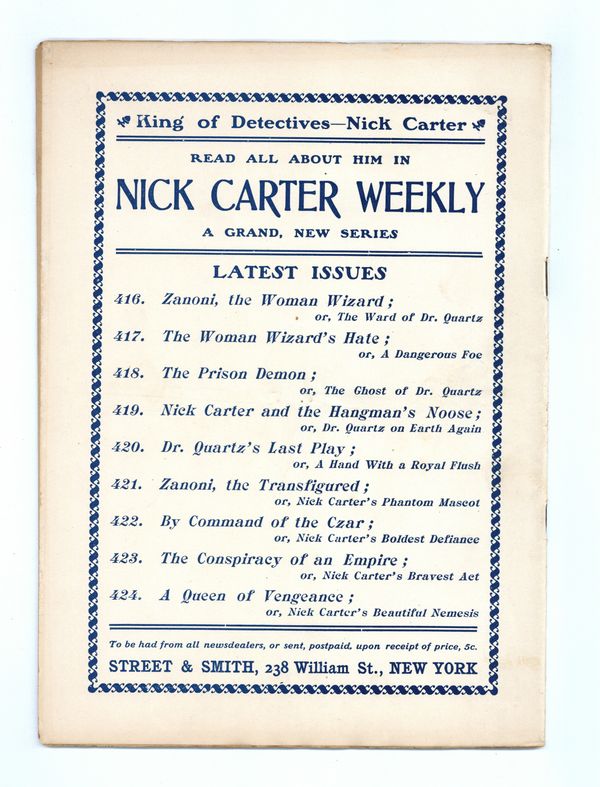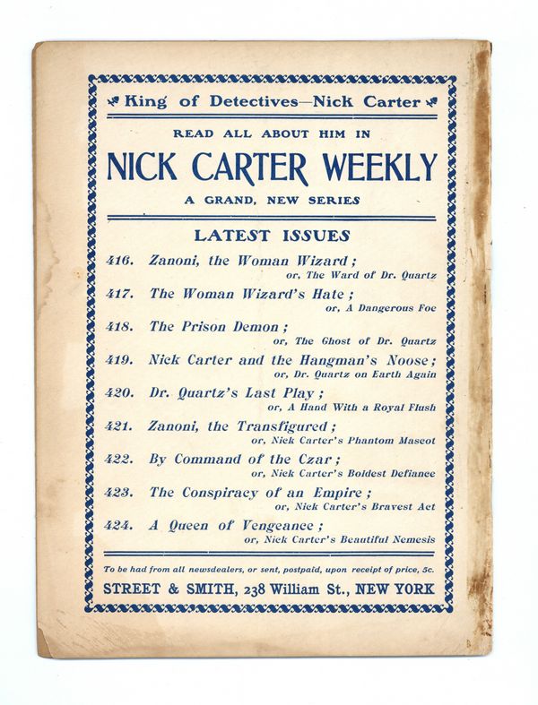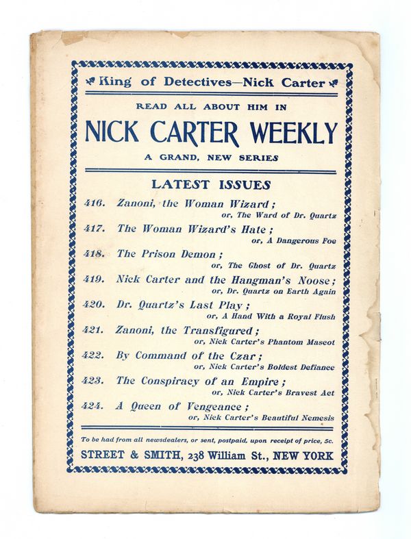 Published Feb 1905 by Street & Smith.$10.00- Water damage: Slight. Staple rust: Slight.
