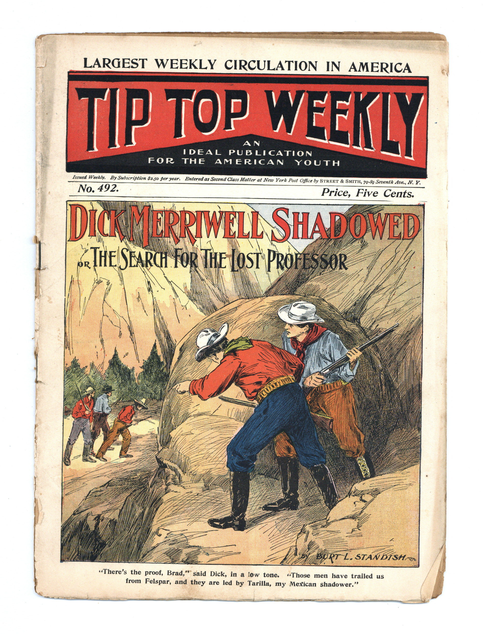 Published Sep 1905 by Street & Smith.$10.00- Spine split 40%. Staple rust: Slight.