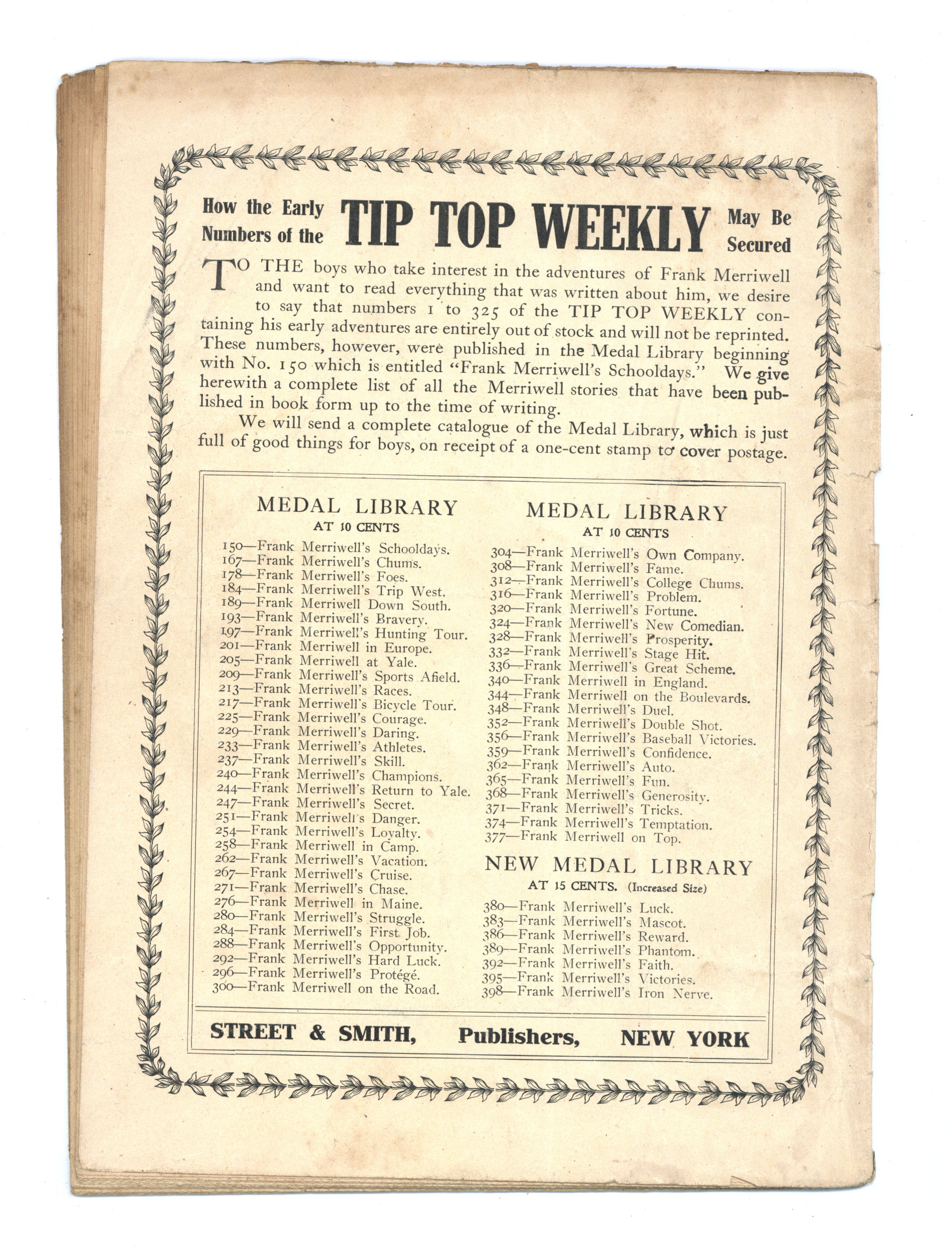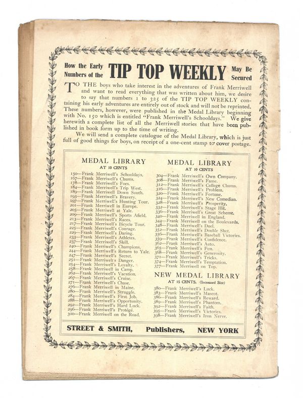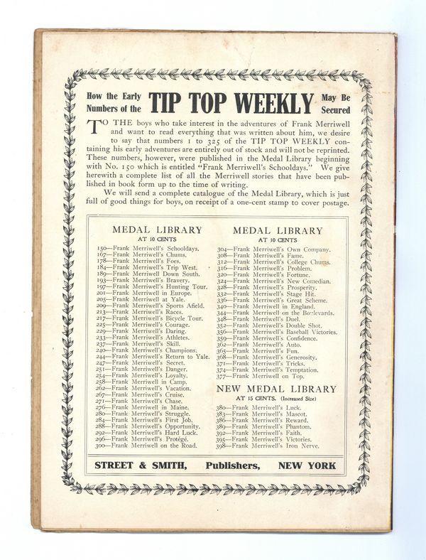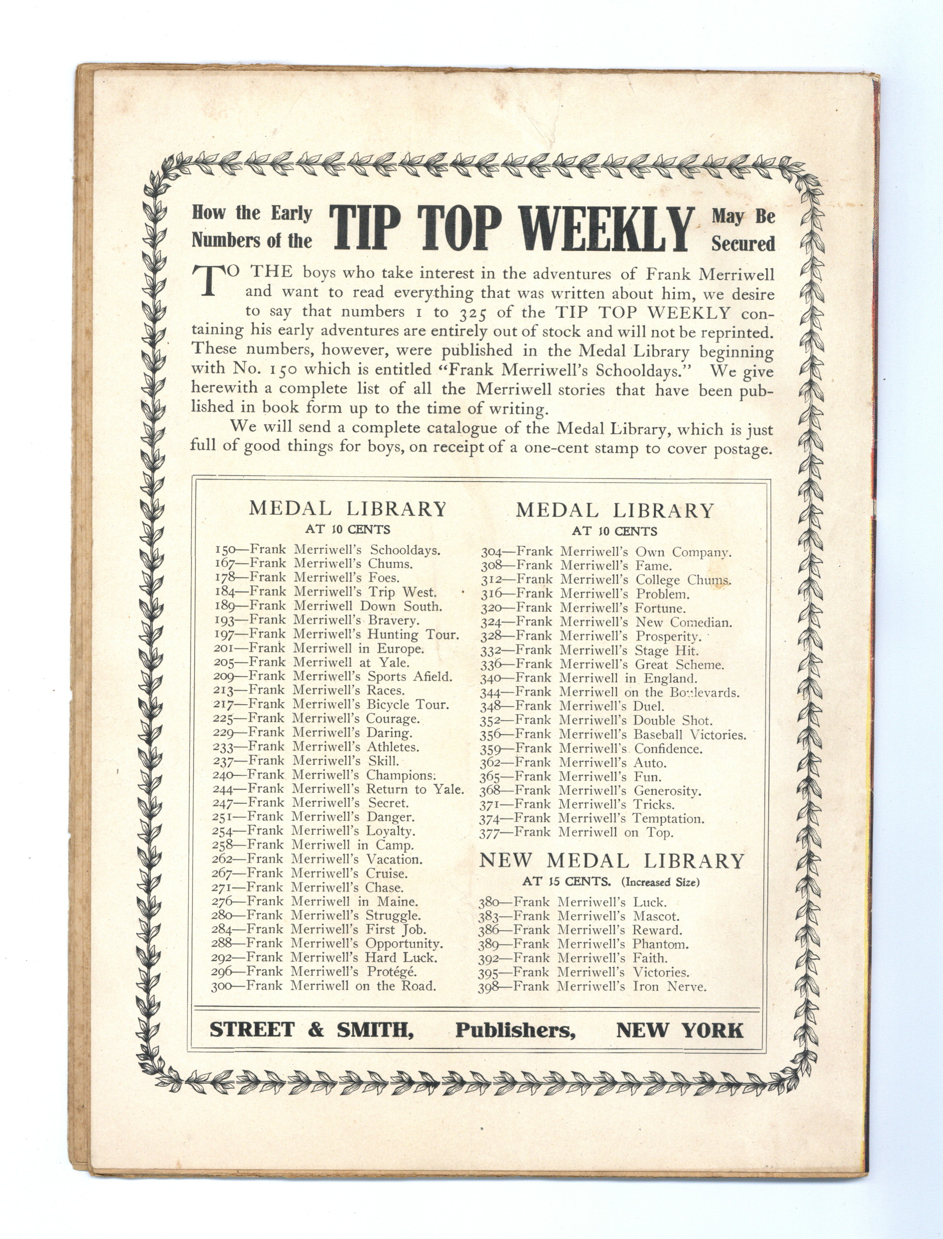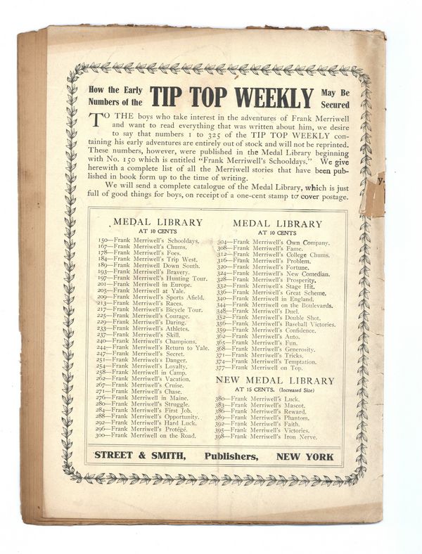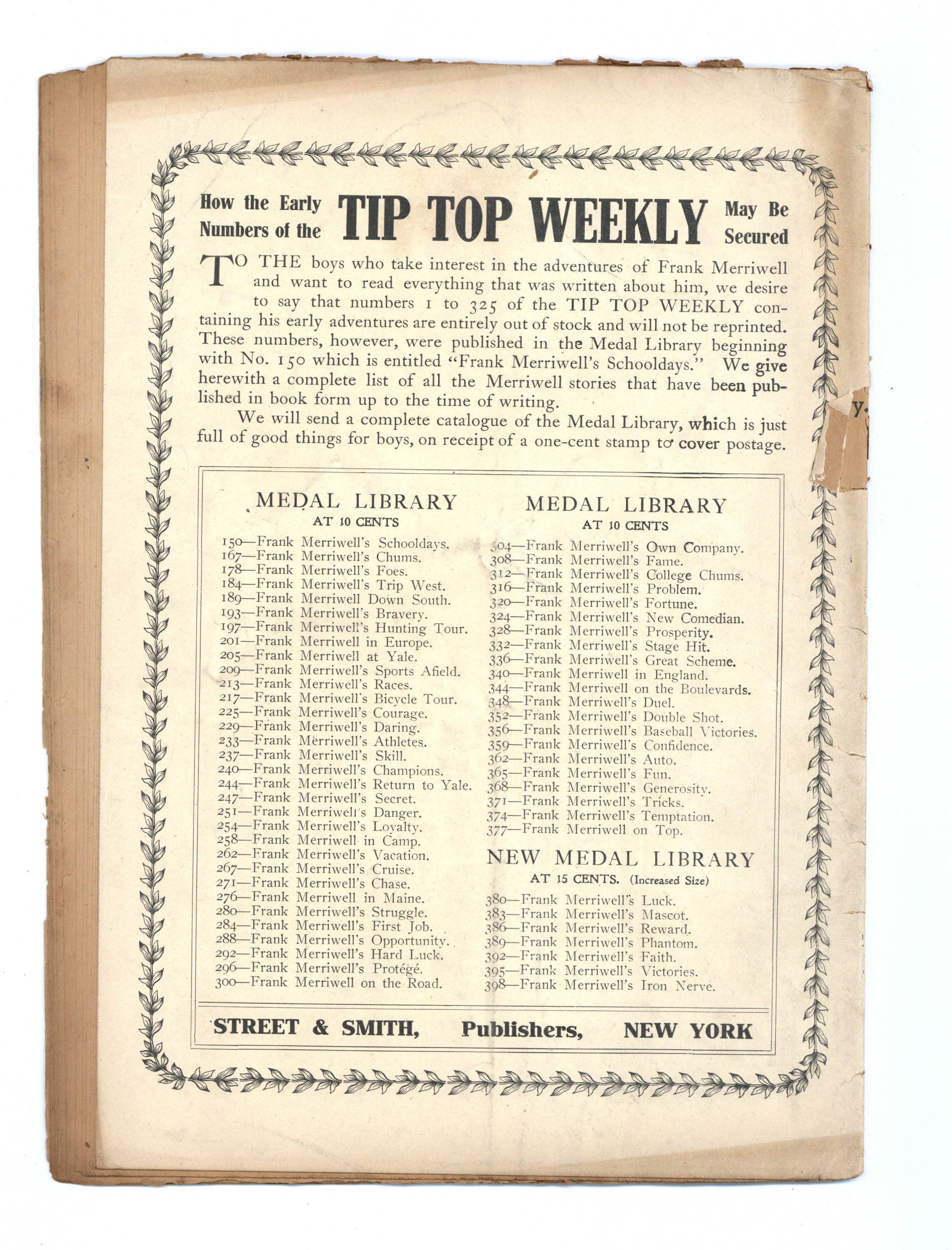 Published Mar 1907 by Street & Smith.$10.00- Spine split 40%. Staple rust: Slight.