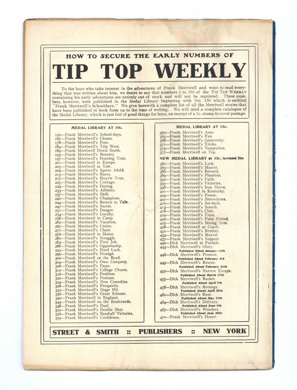 Tags: Pulp AdventurePublished Mar 1908 by Street & Smith.$18.00- Spine split 5%. Water damage: Slight.