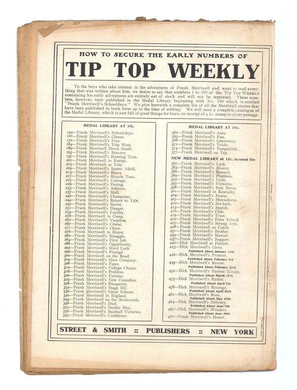 Tags: Pulp AdventurePublished Apr 1908 by Street & Smith.$9.00- Water damage: Slight. Staple rust: Slight.