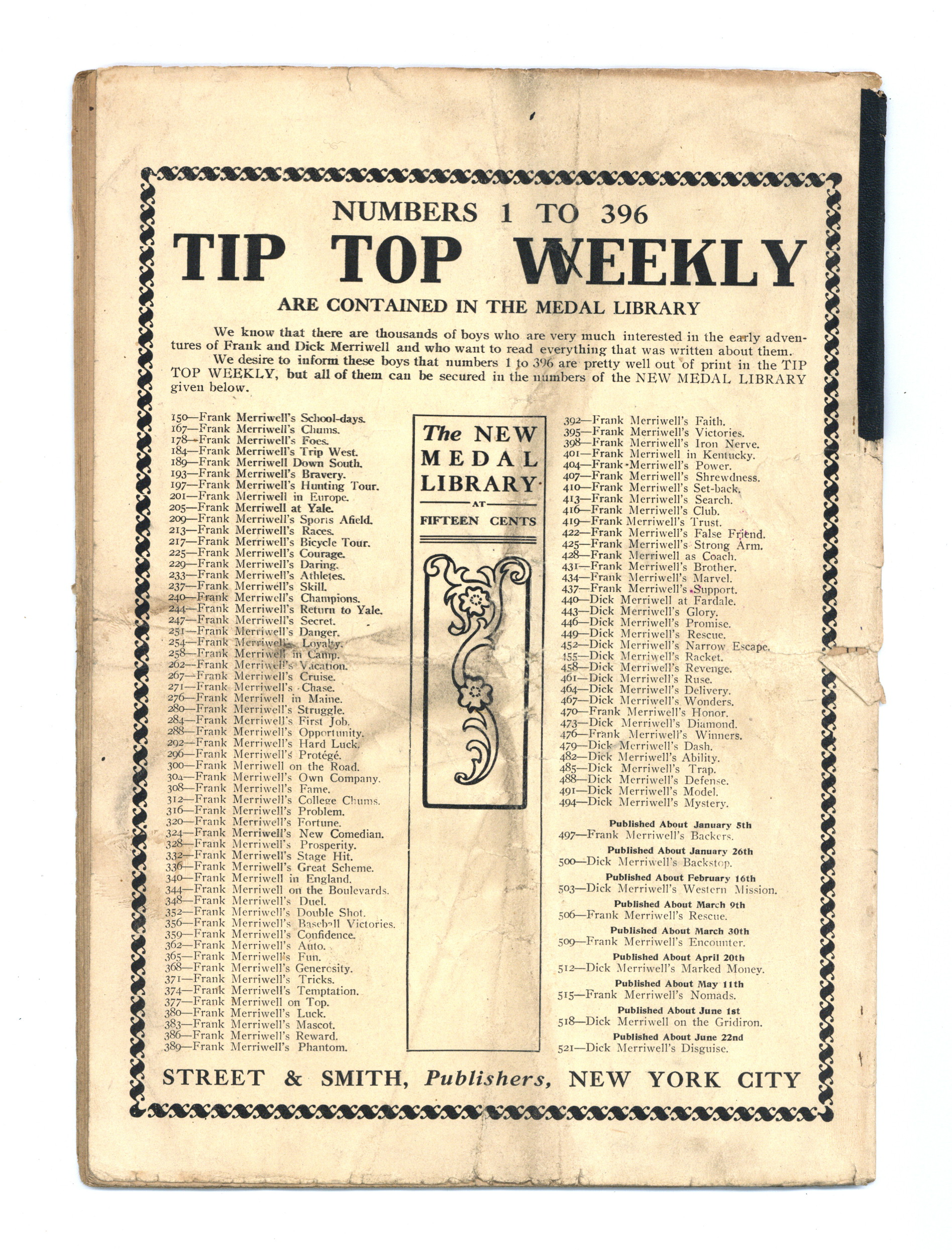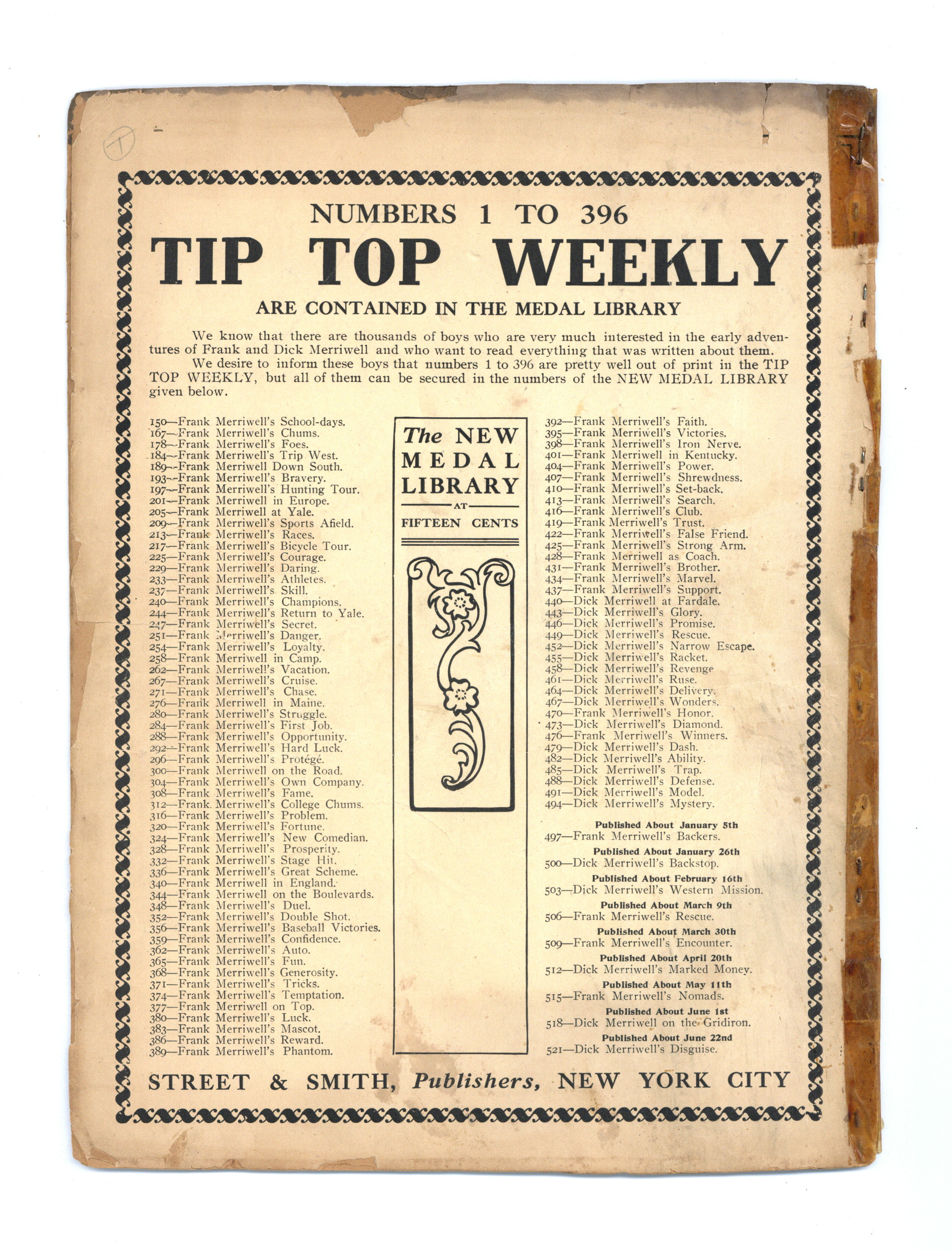 Published Mar 1909 by Street & Smith.$5.00- Spine split 60%. Staple rust: Slight.