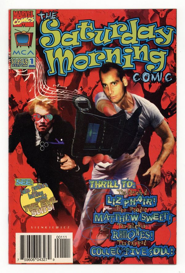 $21.00The official tie-in to the MCA album! An epic tale of time travel, world domination, and your favorite Saturday morning cartoon music! Written by super-star album producer Ralph Sall, and illustrated by: Kieron Dwyer, Steve Lightle, Klaus Janson, Chris Bachalo, Tim Sale, Mike Zeck and more! Look inside for guest appearances by Liz Phair, The Ramones, Matthew Sweet, Collective Soul and oceans of alterna-rockers! Pass the Lucky Charms and let's rock! Cover by Bill Sienkiewicz. Cover price $1.95.
