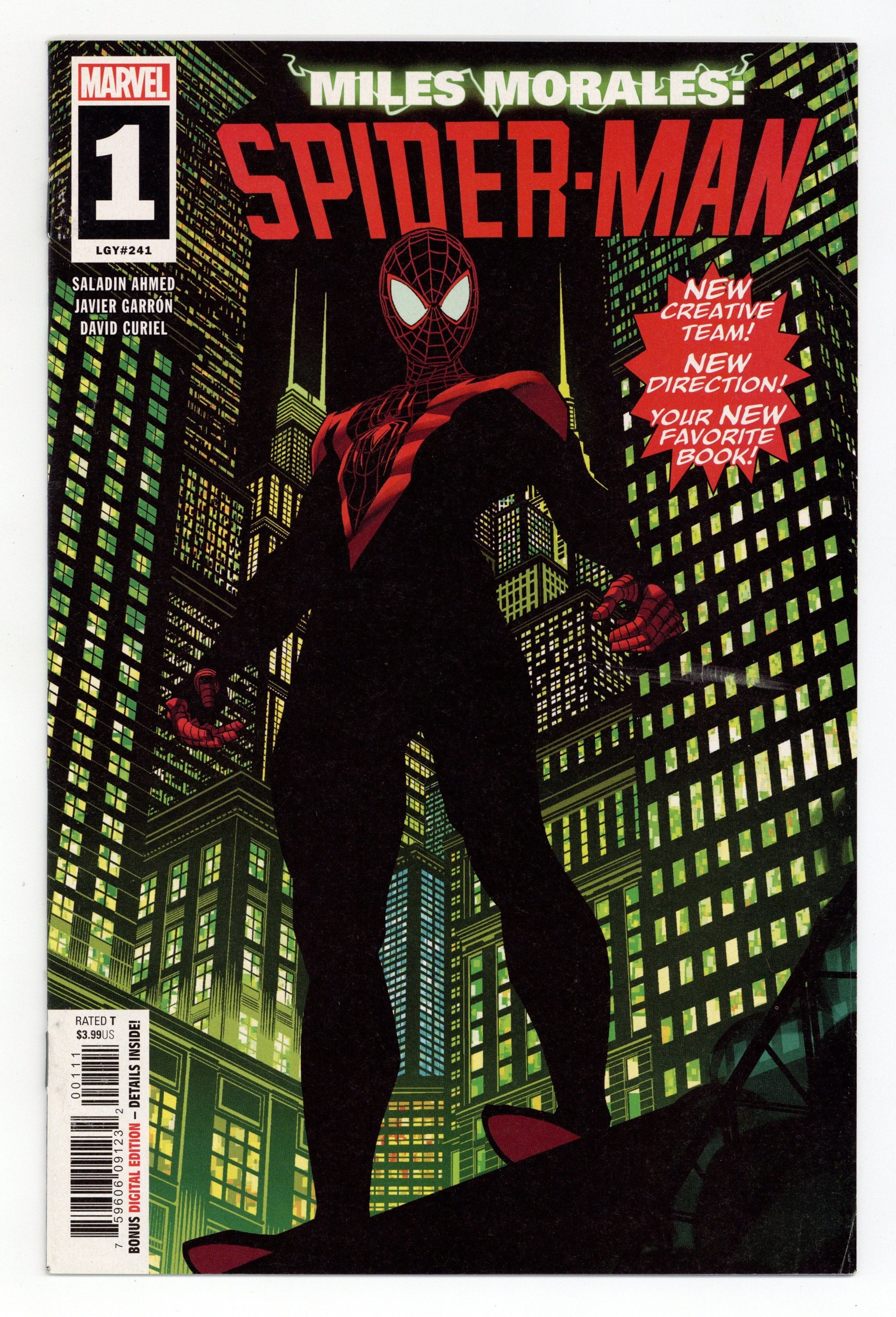 Tags: Marvel Legacy Numbering: Spider-Man (Ultimate) (part 241), Spider-Man$27.00Written by Saladin Ahmed. Art by Javi Garron. Cover by Brian Stelfreeze. Balancing his normal life, school, parents, etc…and super-heroing has never been easy, but when the Rhino and a cadre of mysterious criminals start plaguing Brooklyn, things take a dark turn. And Miles doesn't even know the half of it yet. Eisner Award-winner Saladin Ahmed (BLACK BOLT) and Young Gun Javier Garrón (ANT-MAN & THE WASP) bring you the latest incarnation of the coolest character in the Marvel Universe! 28 pages,full color. Rated T Cover price $3.99.