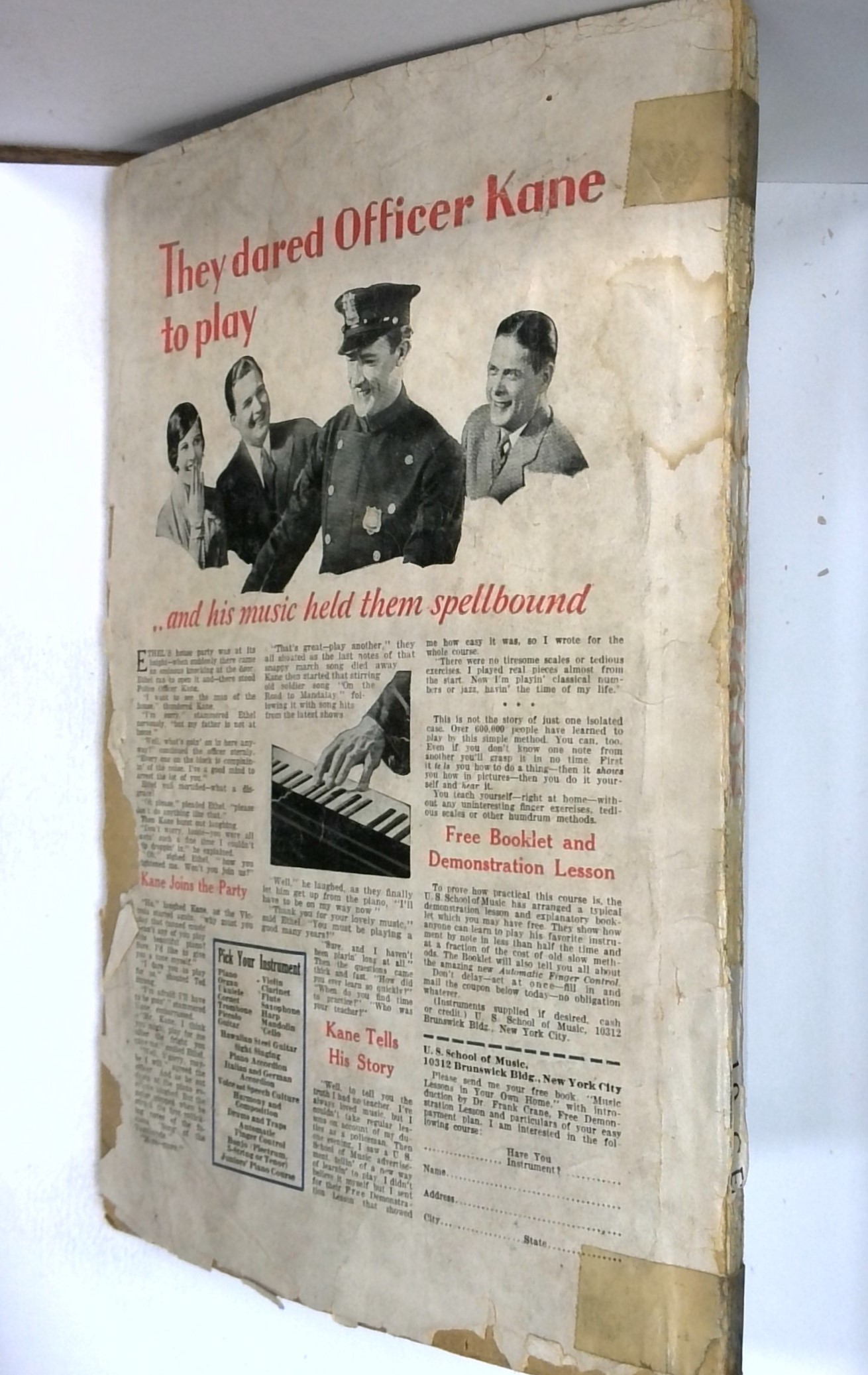 - Front cover detached 15%. Back cover detached 20%. Water damage: Moderate. Staple rust: Slight.