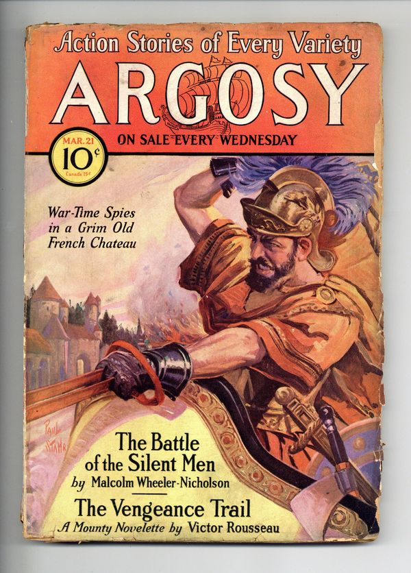 "The Hothouse World" 5/6 a serial by Fred MacIsaacs, and "Battle of the Silent Men by M. Wheeler-Nicholson (founder of DC Comics), plus "The Triumph That Failed" a short story by Jack Woodford.