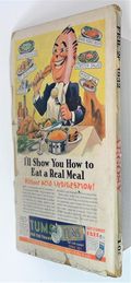 - Front cover detached 25%. Water damage: Slight. Staple rust: Slight.