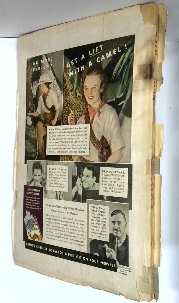 - Front cover detached 25%. Back cover detached 50%. Water damage: Moderate. Staple rust: Slight.