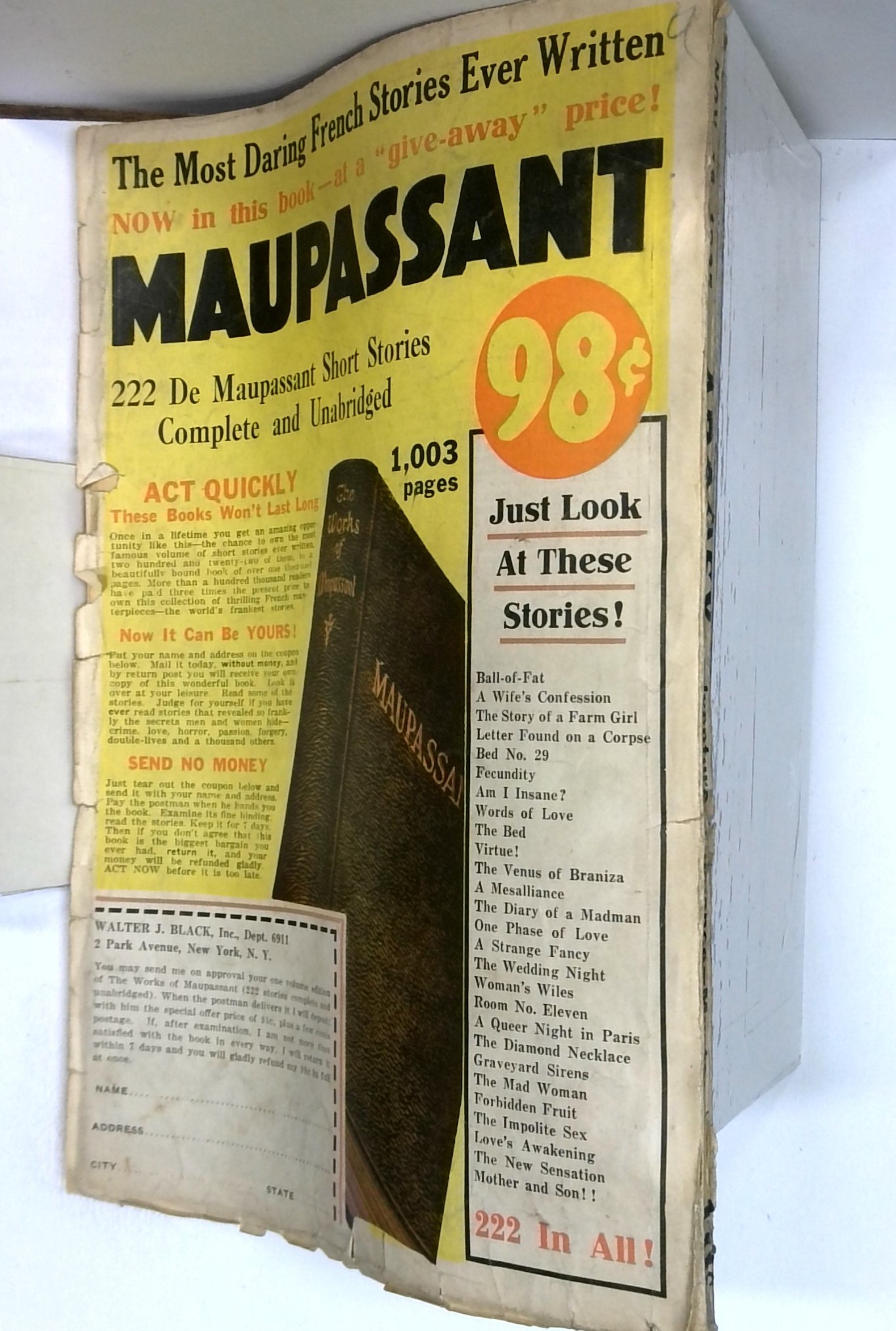 - Front cover detached 60%. Back cover detached 30%. Water damage: Slight. Staple rust: Slight.