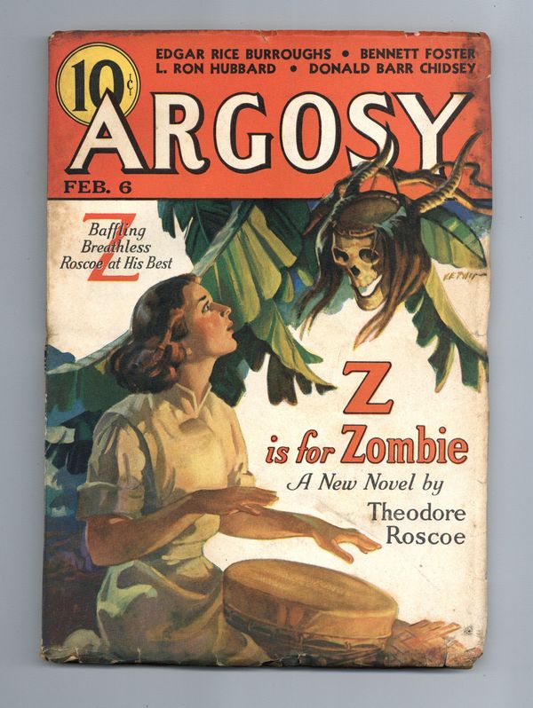 "Seven Worlds to Conquer" 5/6 a serial by Edgar Rice Burroughs, plus "Z is for Zombie" 1/6 a serial by Theodore Roscoe.