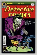 Cover by Bruce Timm. Written by Scott Snyder, Kevin Smith, Paul Dini, Warren Ellis, Denny O'Neil, Christopher Priest, Brian Michael Bendis, Geoff Johns, James Tynion IV, Tom King and Peter J. Tomasi. Art by Greg Capullo, Jim Lee, Dustin Nguyen, Becky Cloonan, Steve Epting, Neal Adams, Alex Maleev, Kelley Jones, Álvaro Martínez-Bueno, Tony S. Daniel, Joëlle Jones, Doug Mahnke, Jonathan Glapion, Scott Williams, Derek Fridolfs, Raul Fernandez and Jaime Mendoza. After 80 years, it's here -- the 1,000th issue of DETECTIVE COMICS, the title that literally defines DC! This 96-page issue is stacked with an unbelievable lineup of talent that will take you on a journey through Batman's past, present and future...plus a sensational epilogue that features the first-ever DC Universe appearance of the deadly Arkham Knight! But who is under the mask? And why do they want Batman dead? The incredible future of Batman adventures begins here! Featuring: "Batman's Longest Case" by Scott Snyder, Greg Capullo and Jonathan Glapion; "Manufacture for Use" by Kevin Smith, Jim Lee and Scott Williams; "The Legend of Knute Brody" by Paul Dini, Dustin Nguyen and Derek Fridolfs; "The Batman's Design" by Warren Ellis and Becky Cloonan; "Return to Crime Alley" by Denny O'Neil and Steve Epting; "Heretic" by Christopher Priest and Neal Adams; "I Know" by Brian Michael Bendis and Alex Maleev; "The Last Crime in Gotham" by Geoff Johns and Kelley Jones; "The Precedent" by James Tynion IV, Álvaro Martínez-Bueno and Raul Fernandez; "Batman's Greatest Case" by Tom King, Tony S. Daniel and Joëlle Jones; and the Arkham Knight in "Medieval" by Peter J. Tomasi, Doug Mahnke and Jaime Mendoza (continues next issue). Plus pin-ups by Mikel Janín, Jason Fabok and Amanda Conner. 96 pages, full color. Rated T Cover price $9.99.