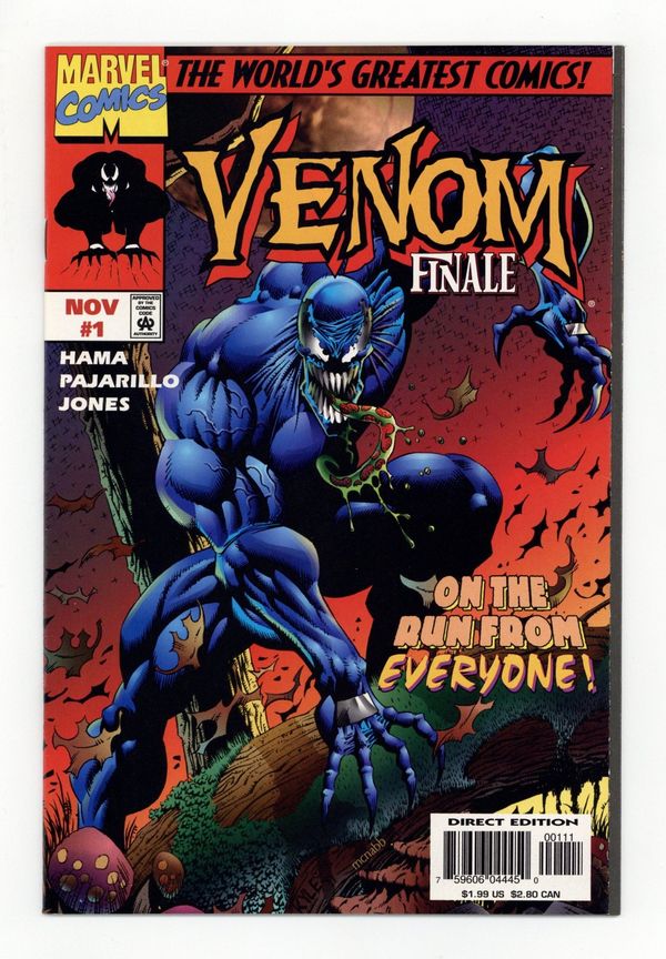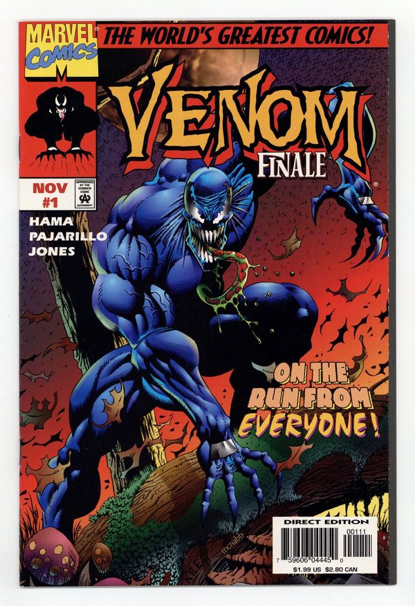Kicking off the final Venom limited series--a shocker that will reposition him as the most deadly foe of Spider-Man! After a disastrous assignment gone horribly wrong, Venom goes rogue, with the forces of the Overreach Committee anxious to silence their one-time operative! And when Venom resurfaces, can a certain wall-crawler be far behind? Written by Larry Hama. Art by Mark Pajarillo and Robert Jones. Cover by Kyle Hotz. Cover price $1.99.