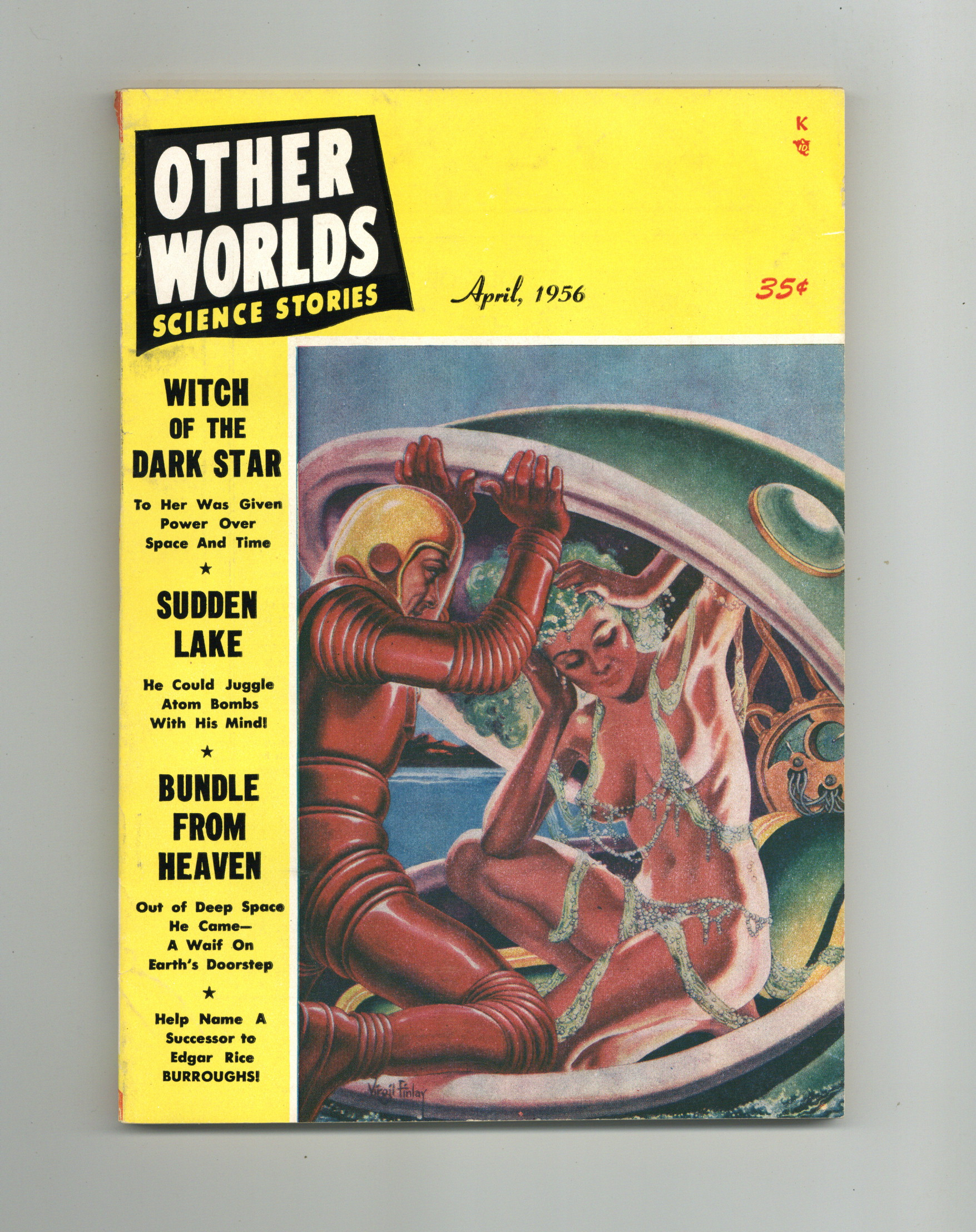 April, 1956. Stories include "Witch of the Dark Star", "Sudden Lake", "Bundle from Heaven", and more. Softcover Pulp, 6 1/2-in x 9-in, 100 Pages, B&W. Cover price $0.35.