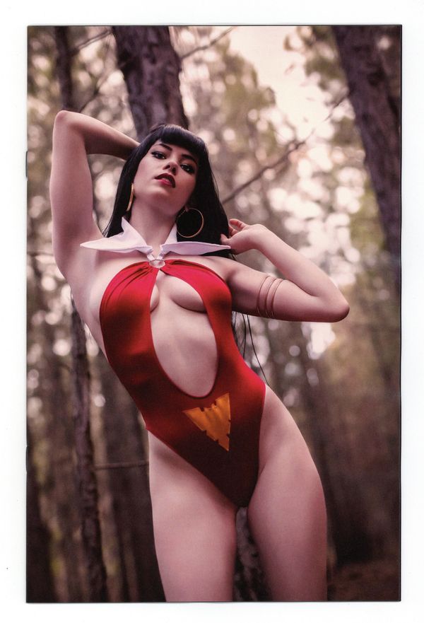 Tags: VampiresPublished Oct 2019 by Dynamite Entertainment.$4.60Limited 1 for 30 Retailer Incentive Variant Cosplay Cover. Written by Christopher Preist. Art by Ergun Gunduz. Seduction of The Innocent Book Four of Twelve: While several of Vampirella's classic enemies gather under mysterious circumstances, Vampirella is goaded into committing a heroic act which may thrust her into the public eye, a place she's definitely not comfortable in! By the ever-unpredictable Christopher Priest and taking-the-US-by-storm Ergun Gunduz! 32 pages, full color. Rated T+ Cover price $3.99.