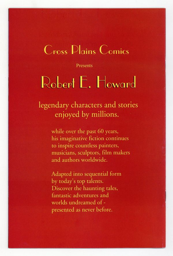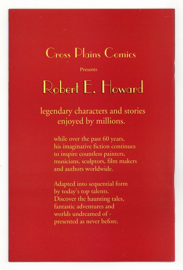 Tags: ConanPublished Sep 1999 by Cross Plains.$46.00Red Sonja returns in a limited comic book series. From out of Red Sonja's past comes a mysterious foe who is destined to make comic book history. Has Sonja finally met her match in fighting skills and fury from this dark warrior woman who claims "Red Sonja Must Die?" The tale is told by Roy Thomas, the man who introduced Red Sonja to Conan the Barbarian, and is illustrated by top artist Steve Lightle who also did the magnificent cover. PC, 32pg" Cover price $2.95.