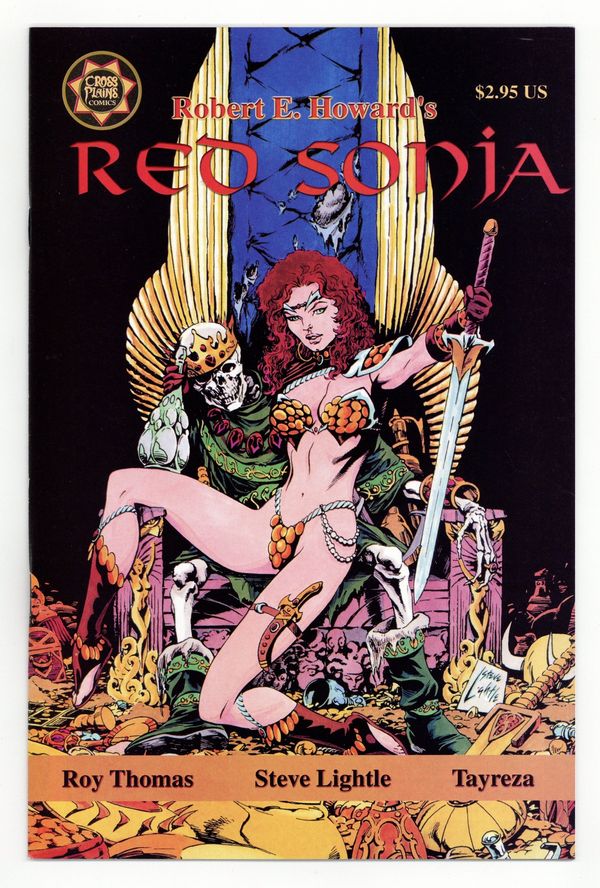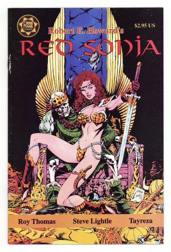 Tags: ConanPublished Sep 1999 by Cross Plains.$20.00Red Sonja returns in a limited comic book series. From out of Red Sonja's past comes a mysterious foe who is destined to make comic book history. Has Sonja finally met her match in fighting skills and fury from this dark warrior woman who claims "Red Sonja Must Die?" The tale is told by Roy Thomas, the man who introduced Red Sonja to Conan the Barbarian, and is illustrated by top artist Steve Lightle who also did the magnificent cover. PC, 32pg" Cover price $2.95.