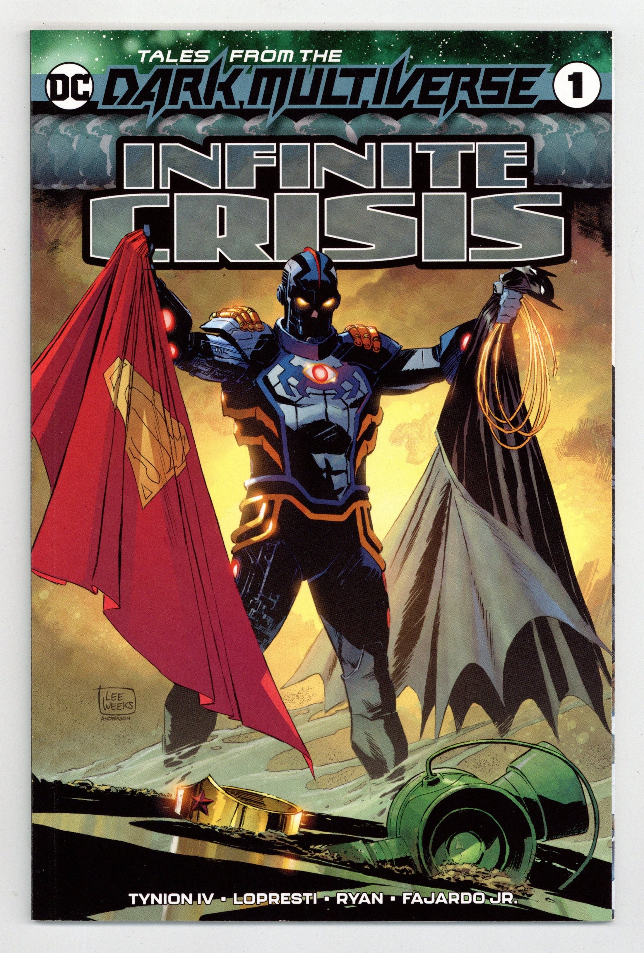 $14.00Written by James Tynion IV. Art by Aaron Lopresti and Matt Ryan. Cover by Lee Weeks. DC's mega-event 'Infinite Crisis' saw the destruction of the Trinity, the rise of Alexander Luthor and Superboy-Prime, and the rebirth of the Multiverse...but it all started with Ted Kord, the Blue Beetle, who saw it all coming and died with secrets that could've saved the world. But...things happened differently in the Dark Multiverse! Not only does Blue Beetle survive- he thrives! And after killing Maxwell Lord himself, Ted sets off a chain of events that irreversibly alters the lives of the Justice League and his best friend, Booster Gold. In trying to prevent a crisis, Blue Beetle becomes the Crisis...and the Dark Multiverse will never be the same. Cover price $5.99.