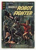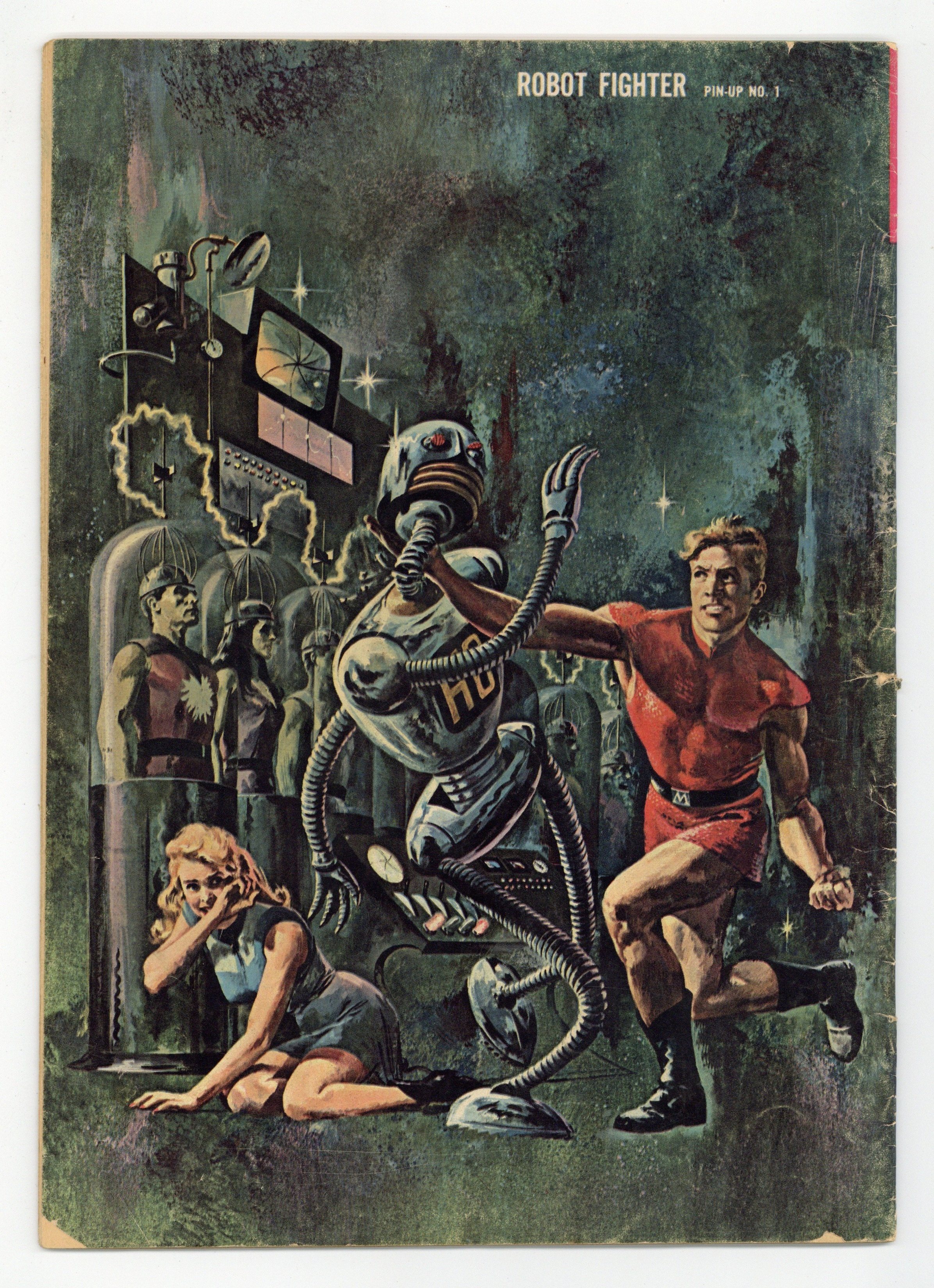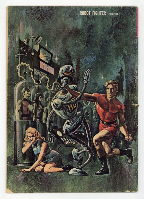 Cover art by Russ Manning (sketch) and George Wilson (painted). Origin and first appearance of Magnus Robot Fighter in "Magnus, Robot Fighter," script and art by Russ Manning; 1A takes Magnus to North Am where he begins his crusade against evil robots by stopping the Polrob Chief H8. "The World of the Future" article on the prophecies of Nostradamus. "The Aliens," script and art by Russ Manning; For the first time, an Earth ship meets an alien ship, which attacks with missiles; The Earthmen would jump-drive for home, but the aliens follow; To safeguard Earth's location, Captain Johner must destroy the enemy; The aliens are saucer-headed loop-limbed giants captained by Zarz, who also must protect his planet. Robot Fighter Pin-Up No. 1on back cover, art by Russ Manning (sketch) and George Wilson (painted). # on cover 10046-302. February. #1 2/63. 36 pgs., full color. Cover price $0.12.