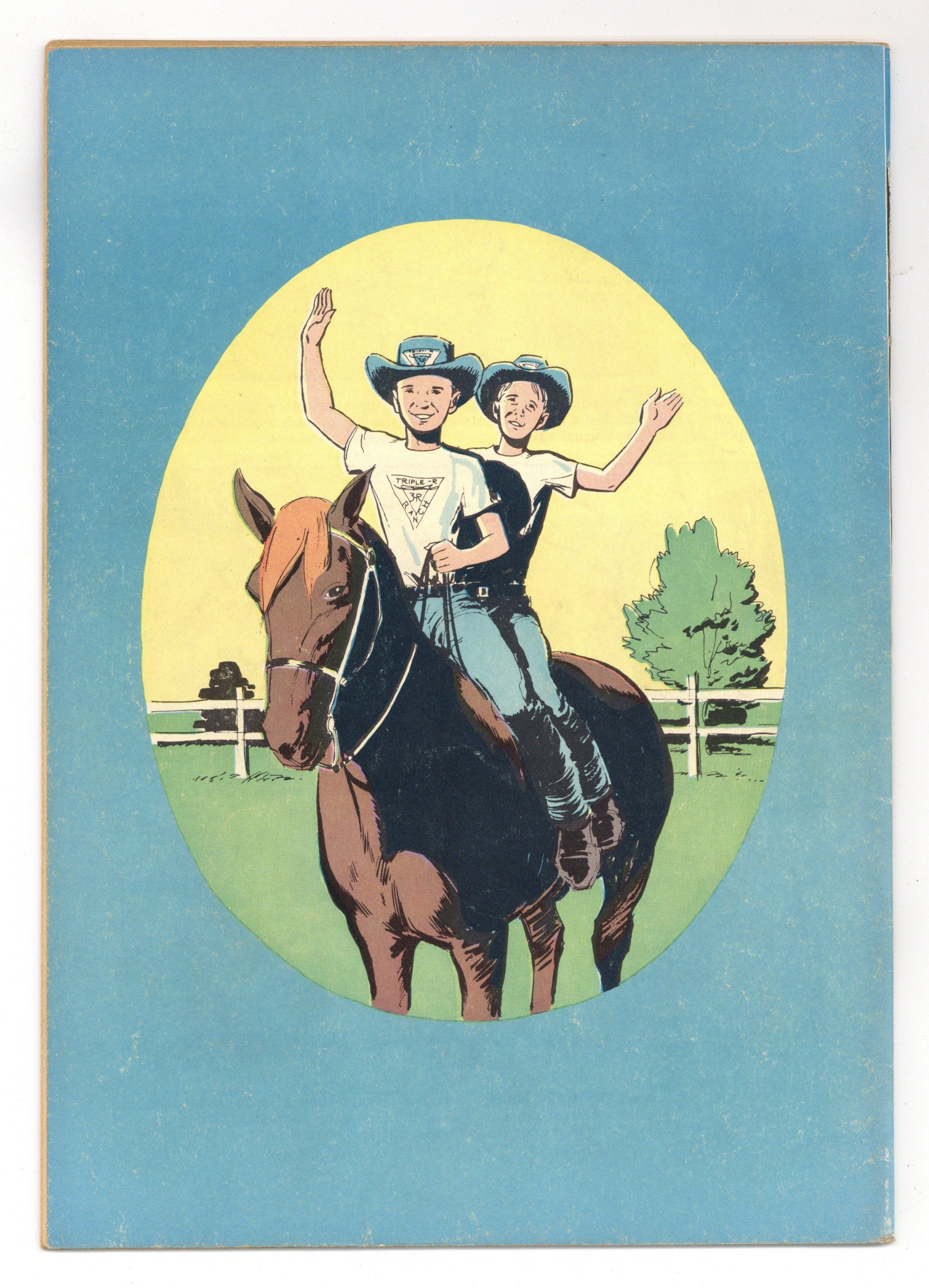 15¢ Edition. Walt Disney's Spin and Marty. Written by Eric Freiwald and Robert Schaefer. Art by Dan Spiegle. Photo Cover has Marty Markham (as played by David Stollery) and Spin Evans (as played by Tim Considine). Their friendship was genuine...but their conflict was inevitable! Based on the 'Spin and Marty' serial that ran in 1956 on The Mickey Mouse Club TV show. Second of six Spin and Marty Four Color issues. 36 pages, full color. Cover price $0.10.