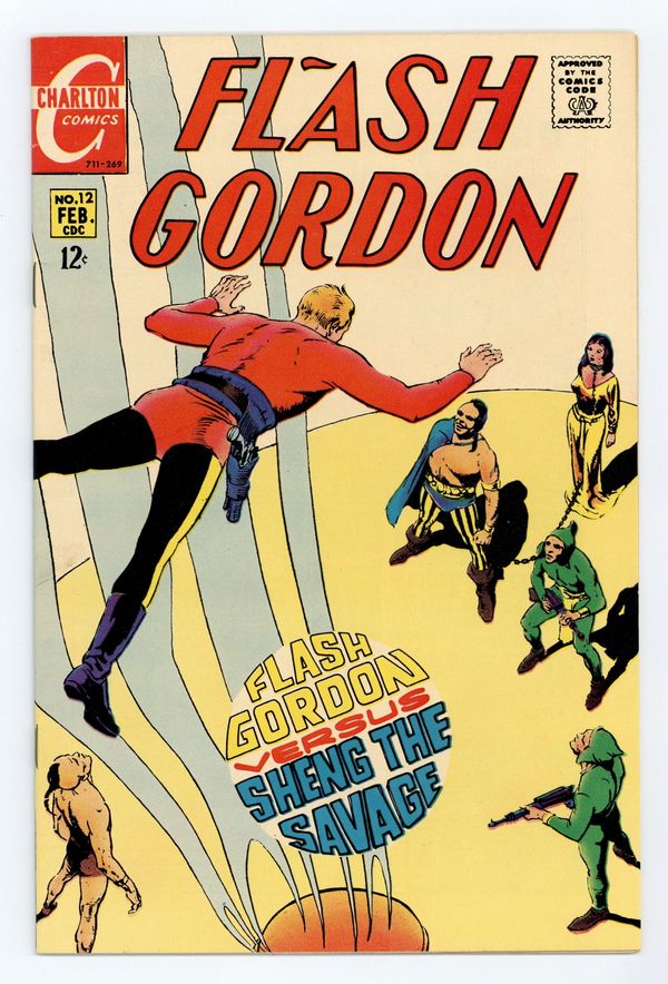 Cover by Reed Crandall. Stories by Bill Pearson and Gary Poole. Art by Reed Crandall, Charles Nicholas and Vince Alascia. First issue published by Charlton. The continuing adventures of Flash Gordon, Dale Arden and Dr. Zarkov on the planet Mongo. Flash and Zarkov are captured by Sheng the Savage, who wants to take over all of Mongo with his death ray. But they are aided by beautiful action girl Sadolore and her trained leopards, in a story with great art by Reed Crandall. Plus a feature on camels. Sheng The Savage!; Ship Of The Desert; Where Aliens Hide. 32 pages, full color. Cover price $0.12.