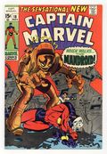 $24.00Cover pencils by Gil Kane, inks by Dan Adkins. "Vengeance Is Mine!", script by Roy Thomas, pencils by Gil Kane (pp. 1-11), John Buscema (pp. 12-20), and John Romita (the last two panels on page 20), inks by Dan Adkins and John Romita (the last two panels on page 20); Rick Jones copes with being Mar-Vell's Earth host and Captain Marvel battles Yon-Rogg and The Mandroid who have kidnapped Carol Danvers at an old Kree outpost; During the battle, Yon-Rogg shoots Carol with a laser which causes her to fall unconscious beneath the damaged Kree Psyche-Magnitron; Captain Marvel rescues her (but not before the Magnitron alters her genetically, allowing for her to gain the powers she will later use as Ms. Marvel). 36 pgs., full color. Cover price $0.15.