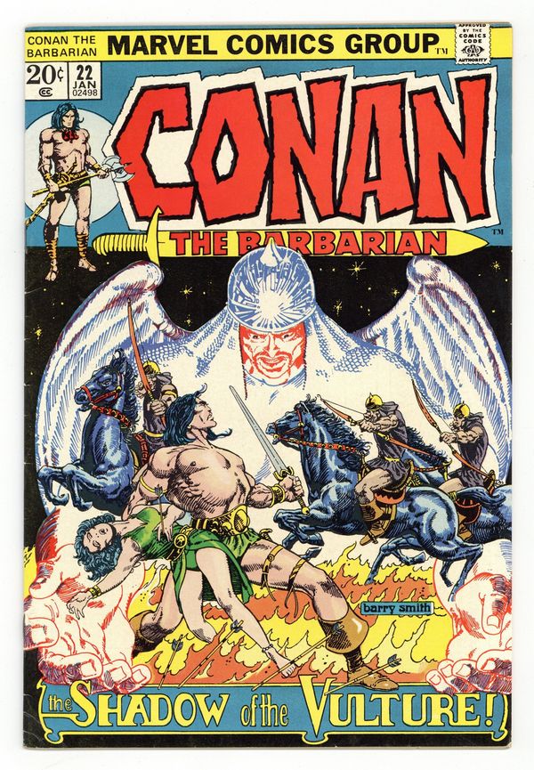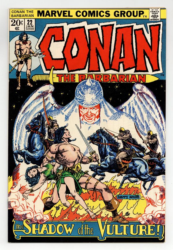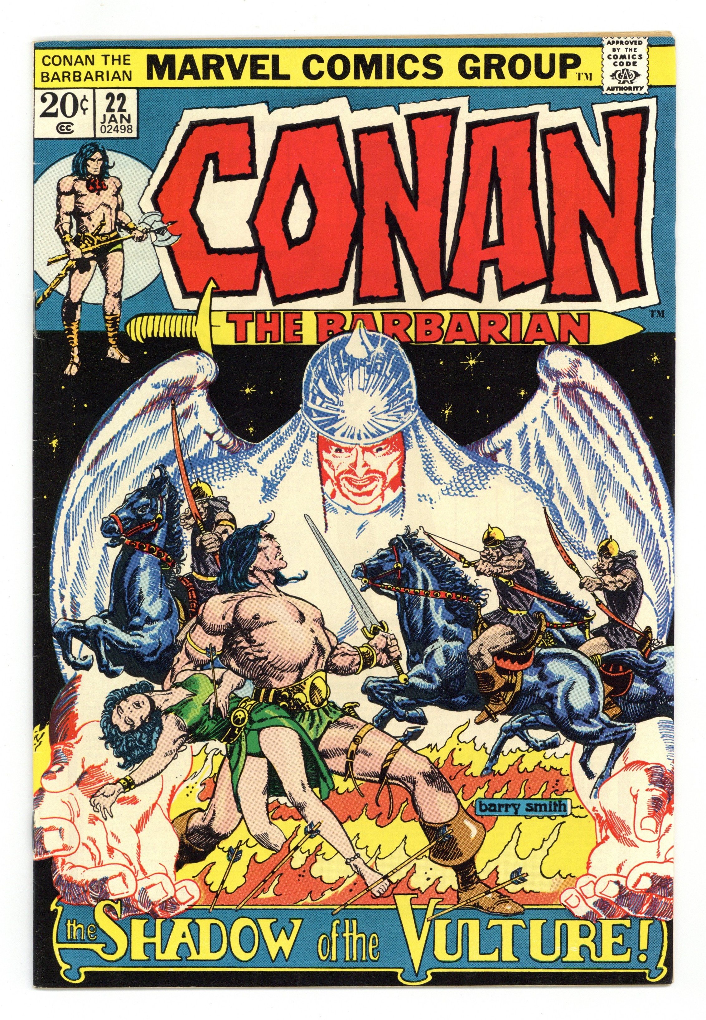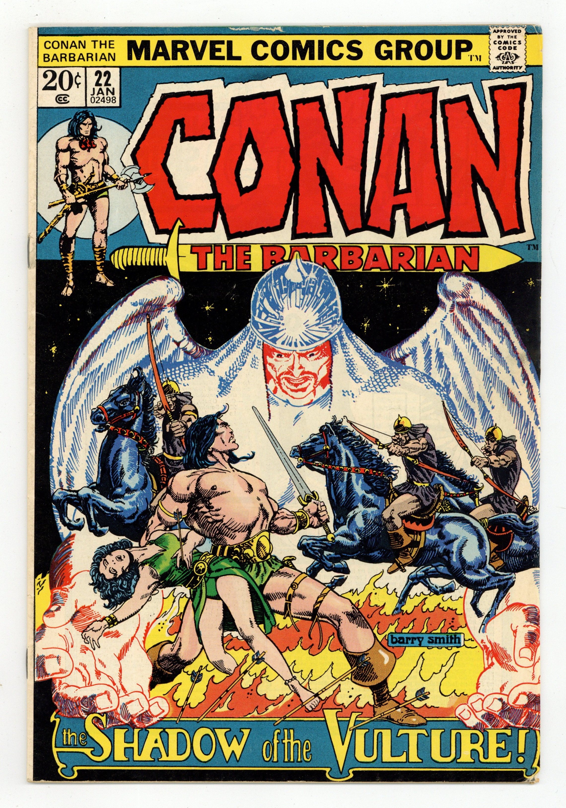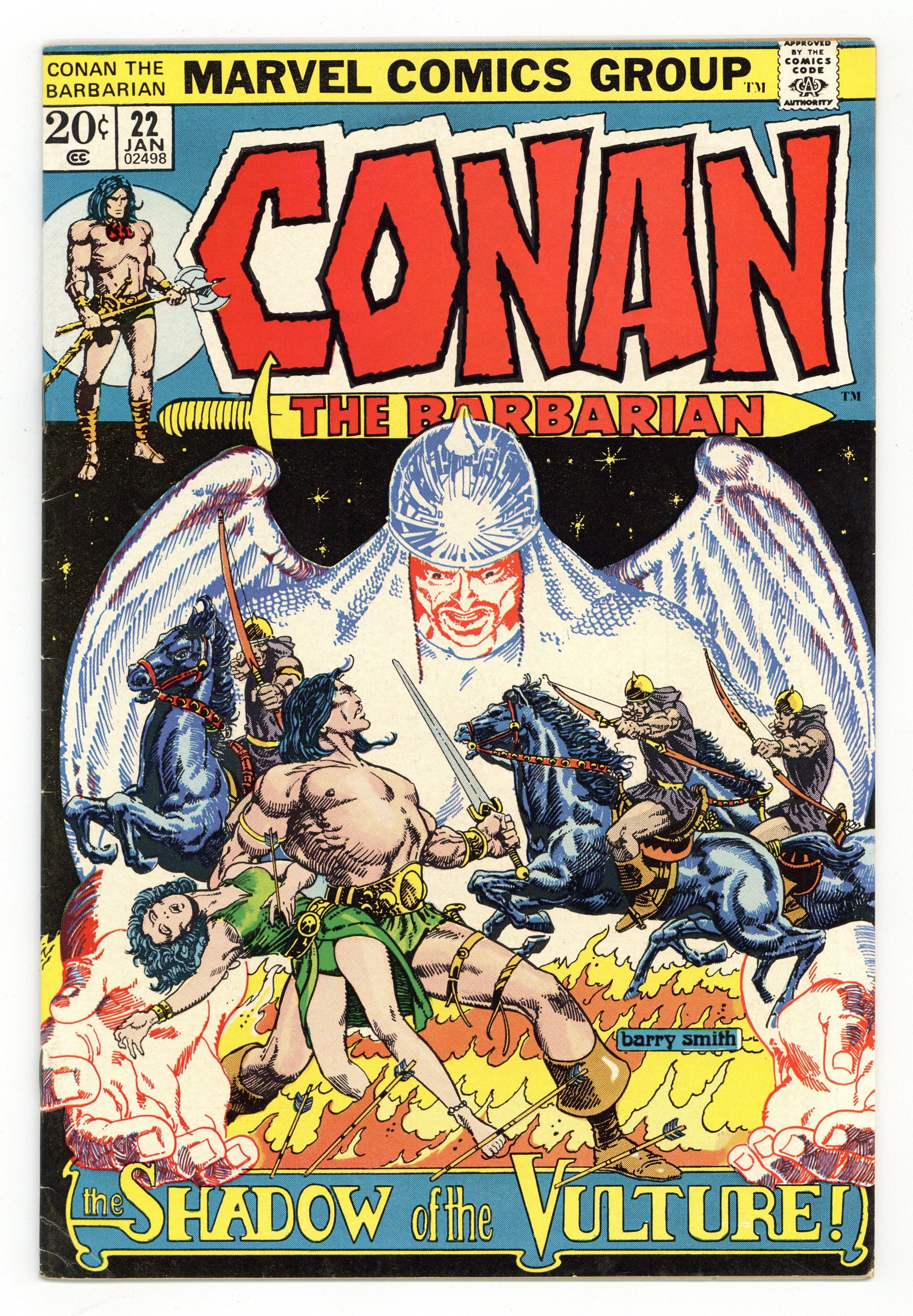Tags: Marvel Legacy Numbering: Conan (part 22), Conan$16.25Cover art by Barry Windsor-Smith. Despite the new Barry Windsor-Smith cover, this issue actually reprints The Coming of Conan from issue 1, script by Roy Thomas, pencils by Windsor-Smith, inks by Dan Adkins; setting: Vanaheim, Conan battles at Vanaheim and sees his future; Tara returns to her dimension. Also in this issue: previously unpublished Windsor-Smith pin-up. 36 pgs. Cover price $0.20. Cover price $0.20.