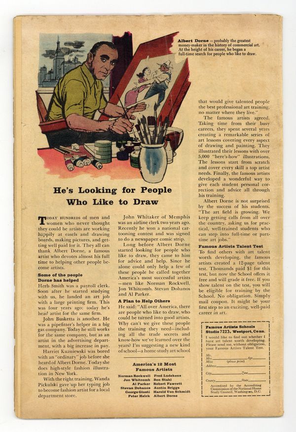 - INCOMPLETE. Several pieces cut out with partial panels MARRIED in (taped, some loose). Slightly affects art and story. Page 5 marriage taped to adjacent ad page.