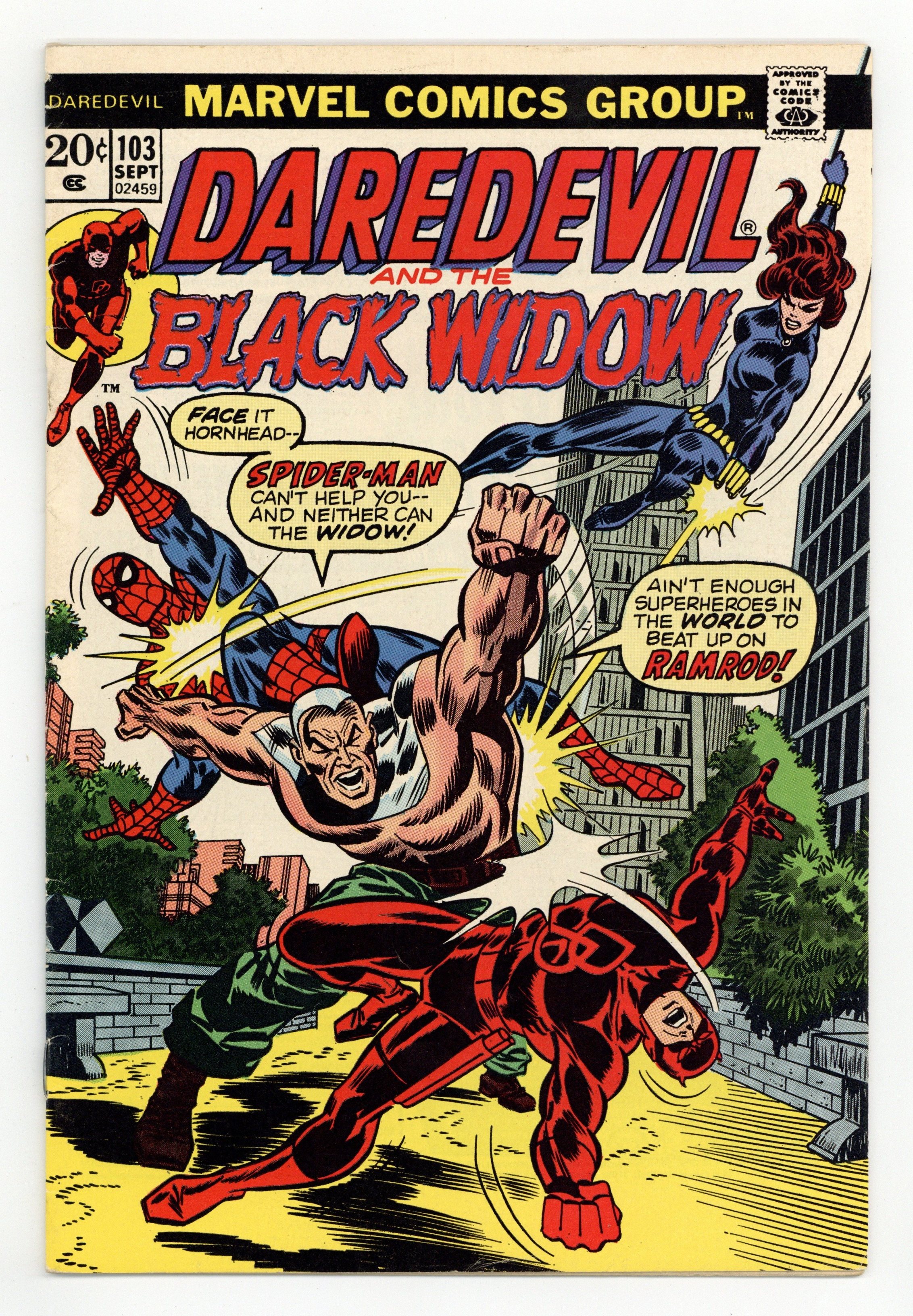 Cover pencils by Don Heck, inks by John Romita Sr. ...Then Came Ramrod!, script by Steve Gerber, pencils by Don Heck, inks by Sal Trapani; Peter Parker arrives on the west coast to interview DD and the Widow for the Daily Bugle; Ramrod attacks and steals a pack of papers that have been given to DD for safe keeping; Spidey, DD and the Widow retrieve the papers and take Ramrod down. 36 pages. Cover price $0.20. Cover price $0.20.