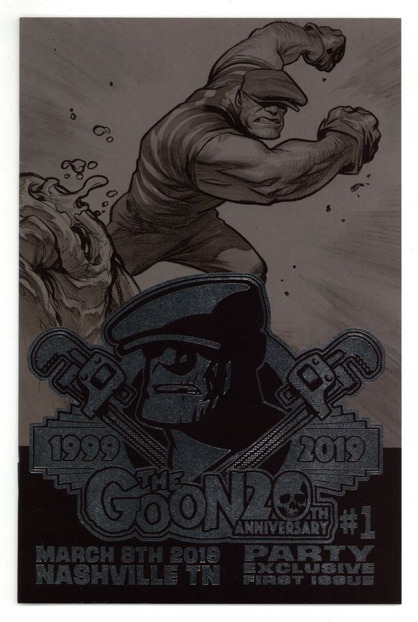 Published 2019 (est.) by Albatross Funnybooks.$20.00Anniversary Party exclusive variant. Story, Art and Cover by Eric Powell. The next era in the legacy of The Goon starts here! This all new series marks The Goon's return to Albatross Funnybooks and is just in time to commemorate the 20th anniversary of the book. Eric Powell takes the series to its humor-based roots as Goon & Franky return from strange adventures abroad to find a horde of unsavory characters have filled the void left in his absence from Lonely Street. 24 pages, full color. Cover price $3.99.