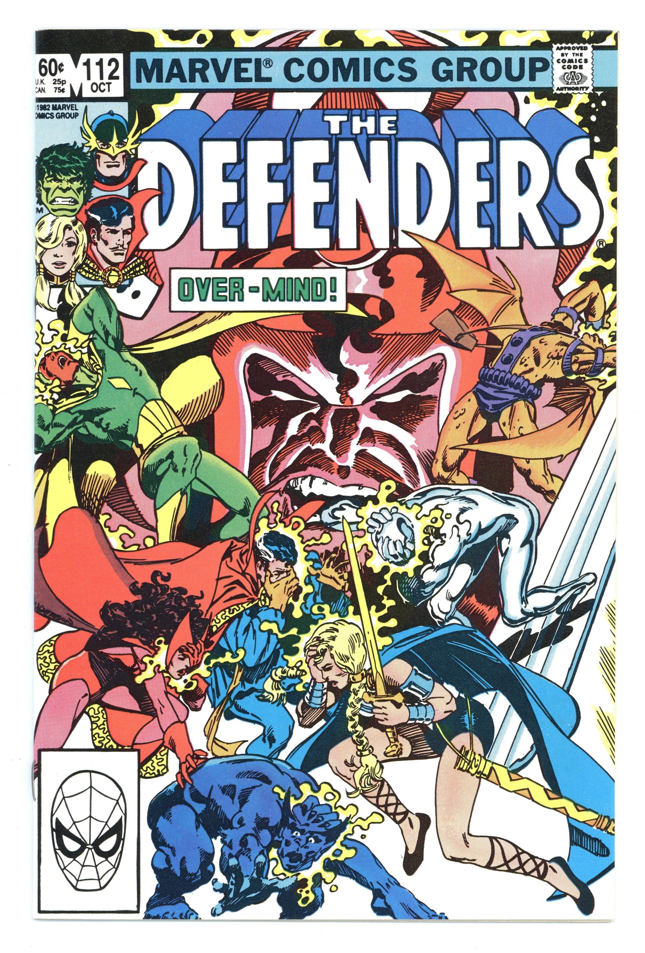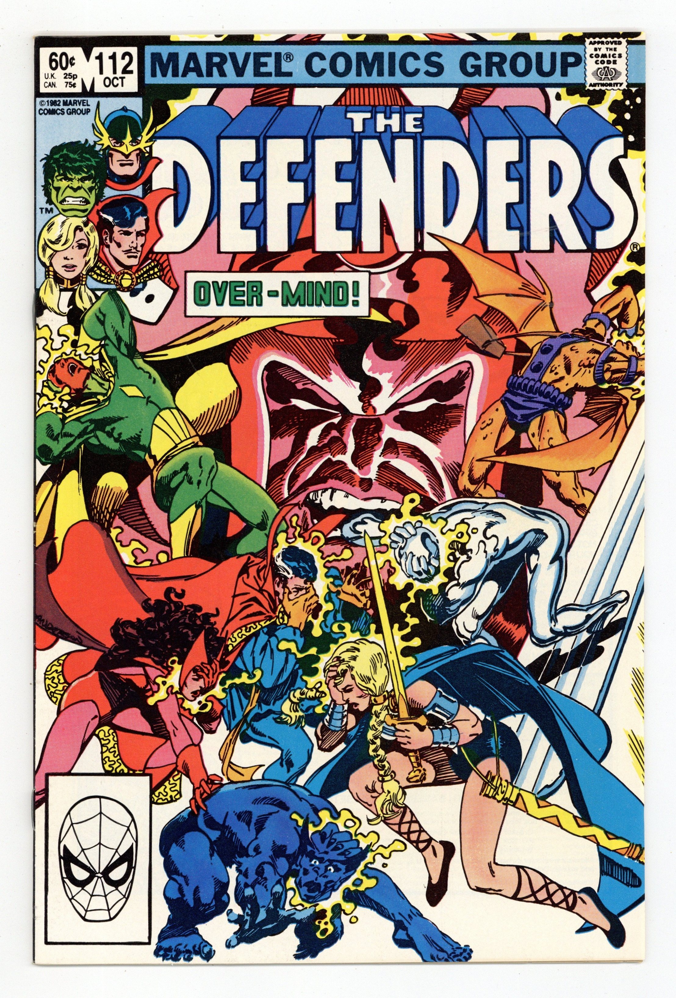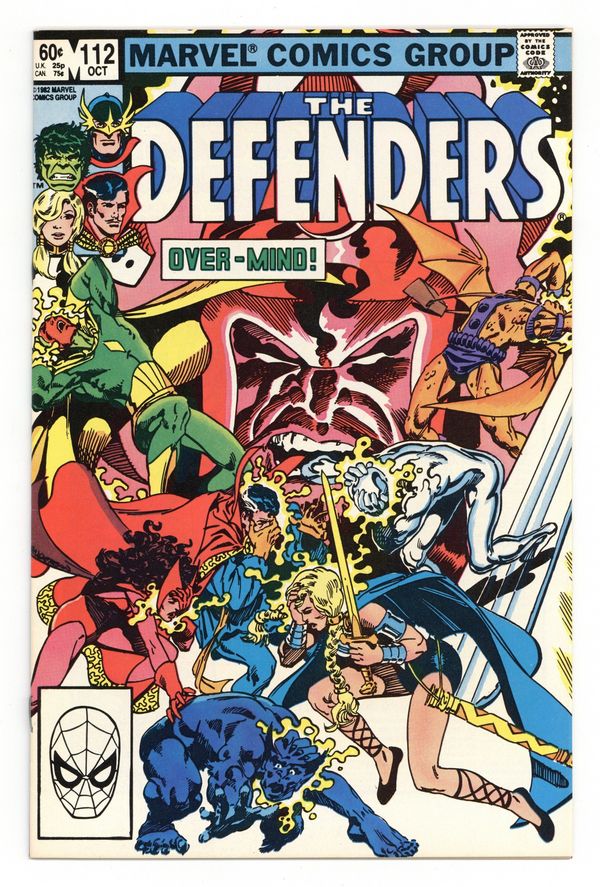 Defenders/Squadron Supreme team-up - "Strange Visitor from Another Planet!" Part 1 of 3. Guest-starring the Vision and the Scarlet Witch. Script by J.M. DeMatteis. Pencils by Don Perlin. Inks by Mike Gustovich. Cover by Brent Anderson. Following the events of Avengers Annual #11, the Defenders host a party at their Upper West Side brownstone. But the festivities are halted when Dr. Strange dramatically appears in astral form! The good doctor has discovered a crisis on another Earth. Specifically, Earth-712 --the home of the Squadron Supreme! And it's a place the Beast, Wanda, and the Vision know very well. What has gone wrong on the squadron's world this time? Hyperion and Nighthawk spin an unbelievable tale -- of how theOvermind took over the United States and the Squadron Supreme! Cameo appearances by August Masters, Chorus, and Vera Cantor. Flashback cameo by the Avengers to recap the Serpent Crown saga in Avengers 141-148. Defenders Lineup: Beast, Dr. Strange, Gargoyle, Hellstorm, Hulk, Silver Surfer, Sub-Mariner, and Valkyrie. (Note: The Overmind previously appeared in Fantastic Four 116.) 36 pages. Cover price $0.60.