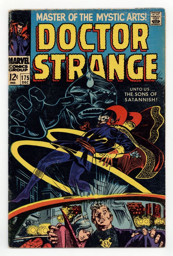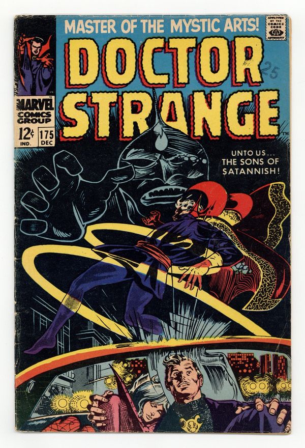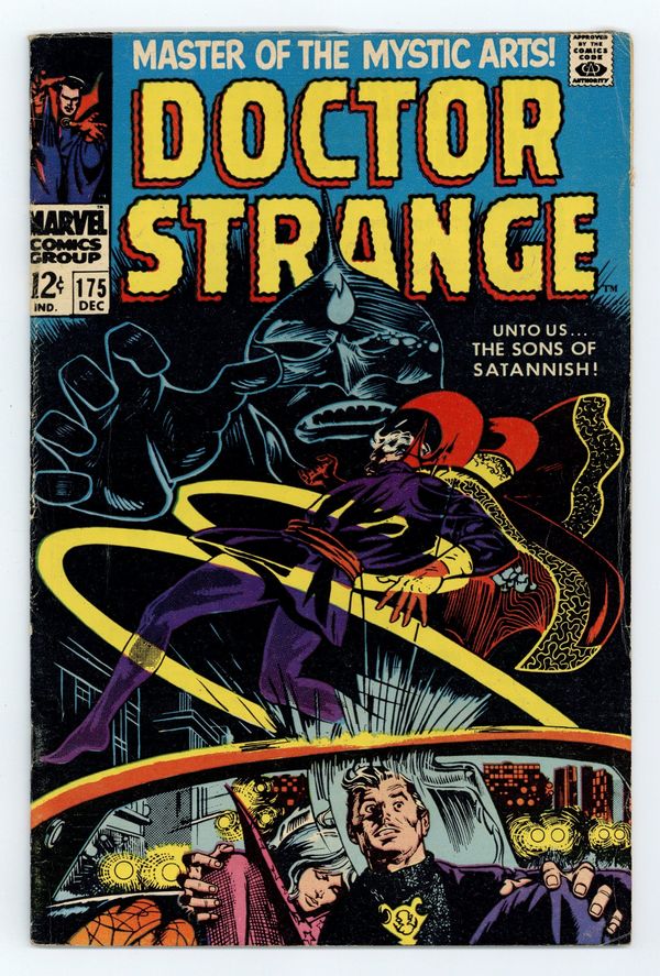 Tags: Marvel Legacy Numbering: Doctor Strange (part 175)$27.99Cover pencils by Gene Colan and Marie Severin, inks by Tom Palmer and Marie Severin. Unto Us... The Sons of Satannish, script by Roy Thomas, pencils by Gene Colan, inks by Tom Palmer; Clea is taken by Admodeus, of the Sons of the Satannish. 36 pgs. $0.12. Cover price $0.12.