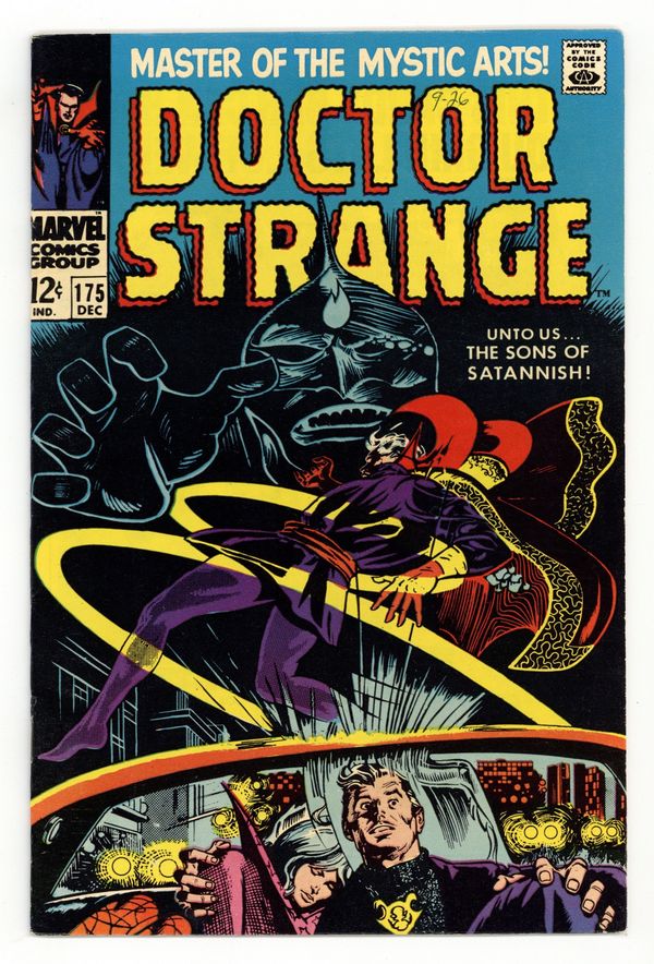 Tags: Marvel Legacy Numbering: Doctor Strange (part 175)$16.25Cover pencils by Gene Colan and Marie Severin, inks by Tom Palmer and Marie Severin. Unto Us... The Sons of Satannish, script by Roy Thomas, pencils by Gene Colan, inks by Tom Palmer; Clea is taken by Admodeus, of the Sons of the Satannish. 36 pgs. $0.12. Cover price $0.12.