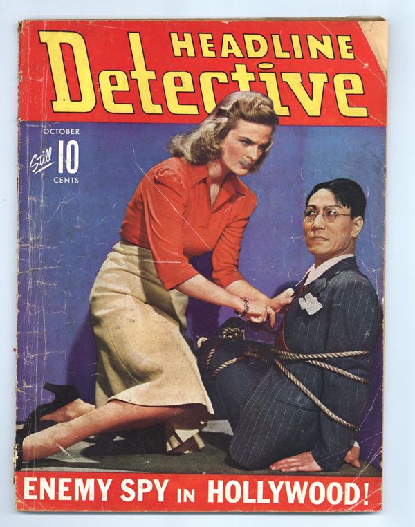 Published Oct 1942 by Headline Detective Publishing Co..$19.75- Front cover detached 25%. Back cover detached 20%. Water damage: Moderate. Staple rust: Slight.