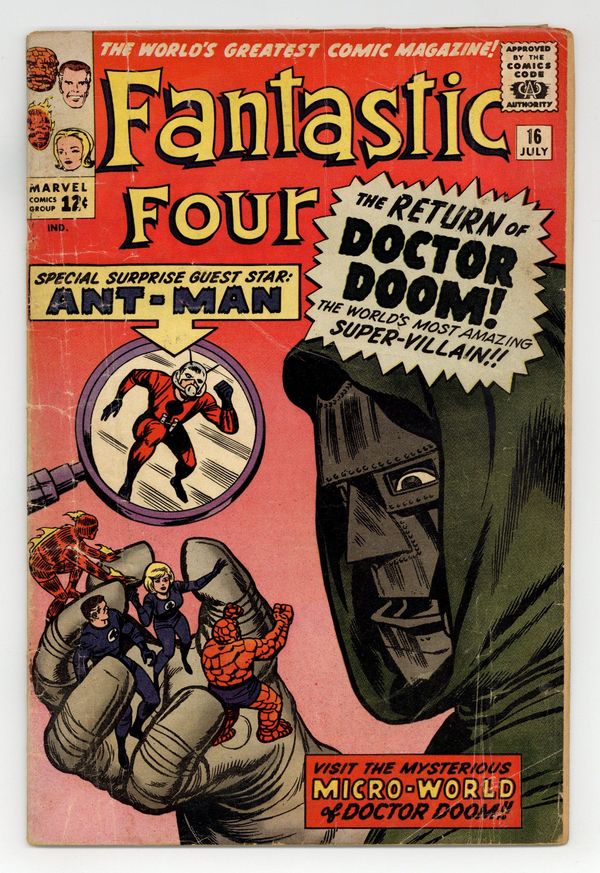 Cover pencils by Jack Kirby, inks by Dick Ayers. The Micro-World of Doctor Doom!, script by Stan Lee, pencils by Jack Kirby, inks by Dick Ayers; The Fantastic Four answers a cry for help from someone too small to be seen. They arrive in a micro-world whose leader is Doctor Doom. Page explaining Reed Richards powers. 36 pgs. $0.12. Cover price $0.12.