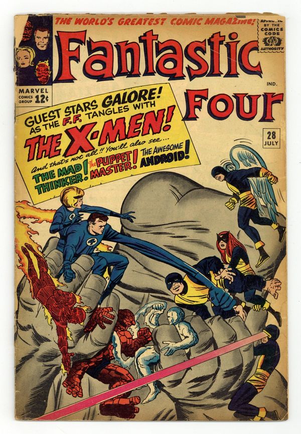 Cover pencils by Jack Kirby, inks by Sol Brodsky. We Have to Fight the X-Men!, script by Stan Lee, pencils by Jack Kirby, inks by Chic Stone; Puppet Master makes a model of Professor X and commands him to send the X-Men after the FF; When Xavier regains control of his senses, the Mad Thinker sends in his Android to finish off both teams. The Mad Thinker and the Puppet Master appearances. 36 pgs. $0.12. Cover price $0.12.