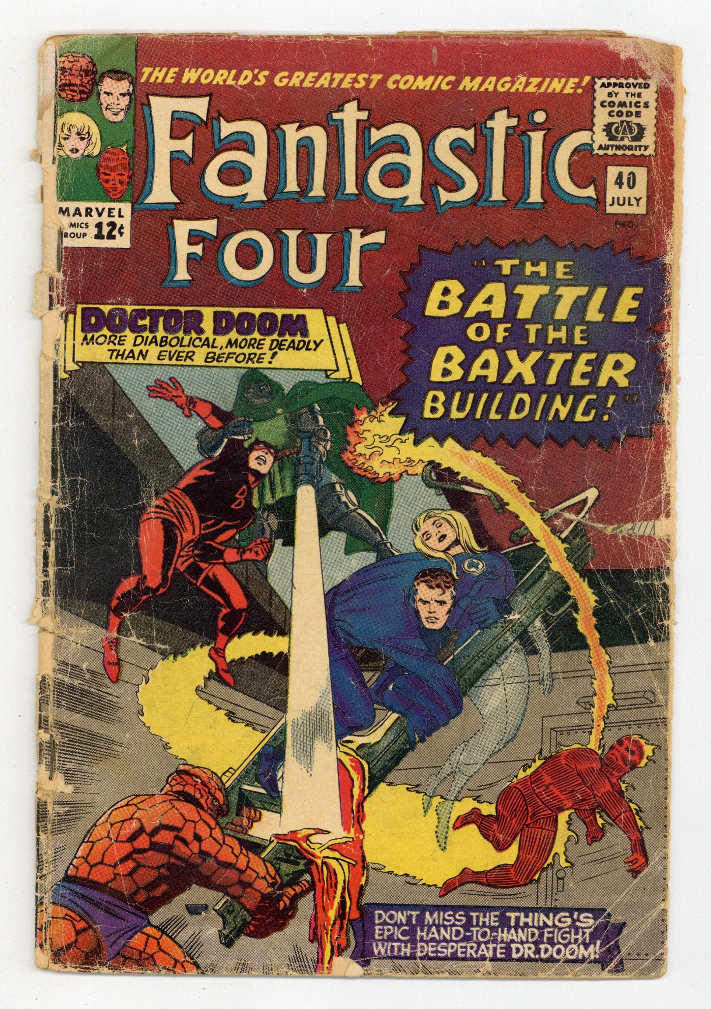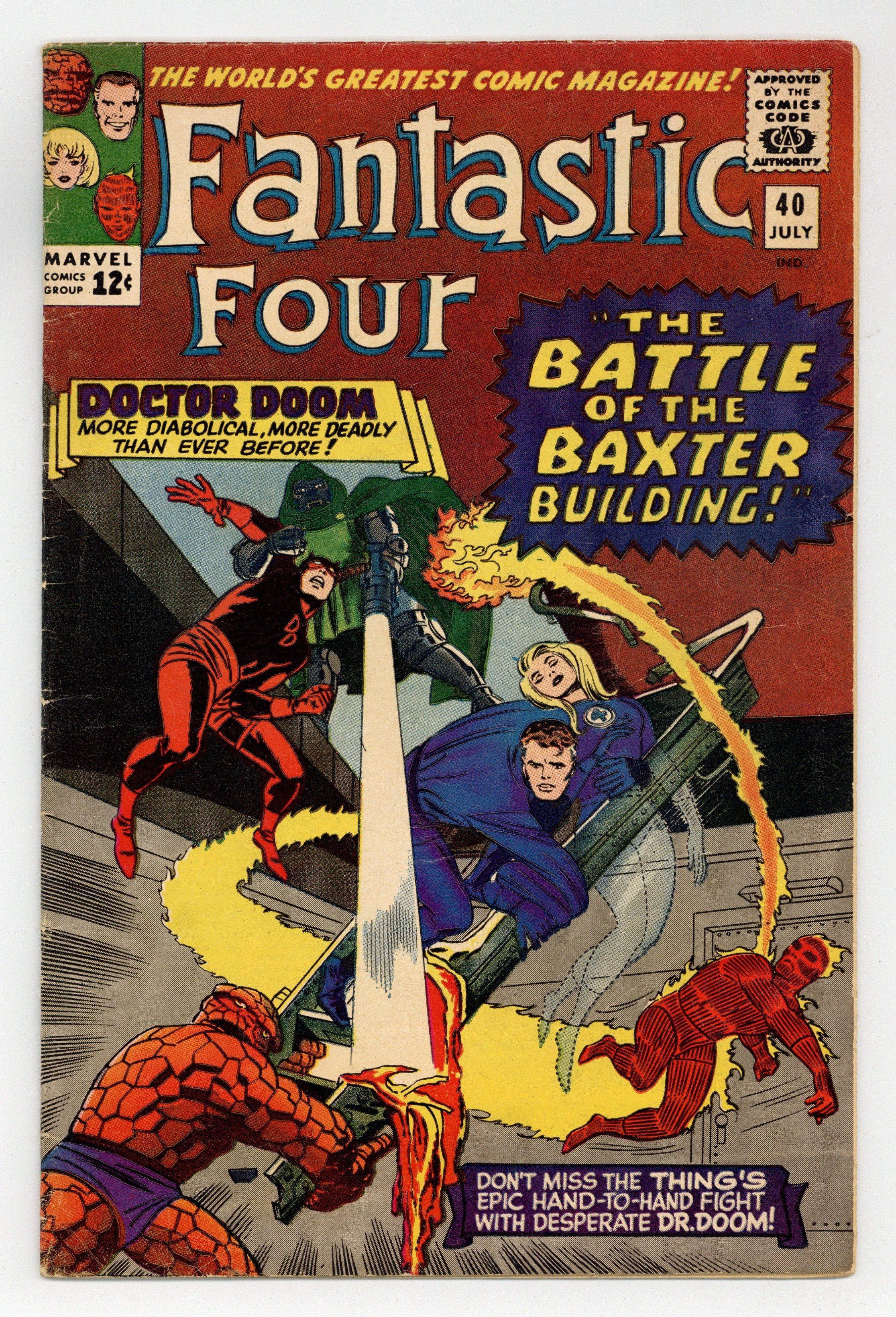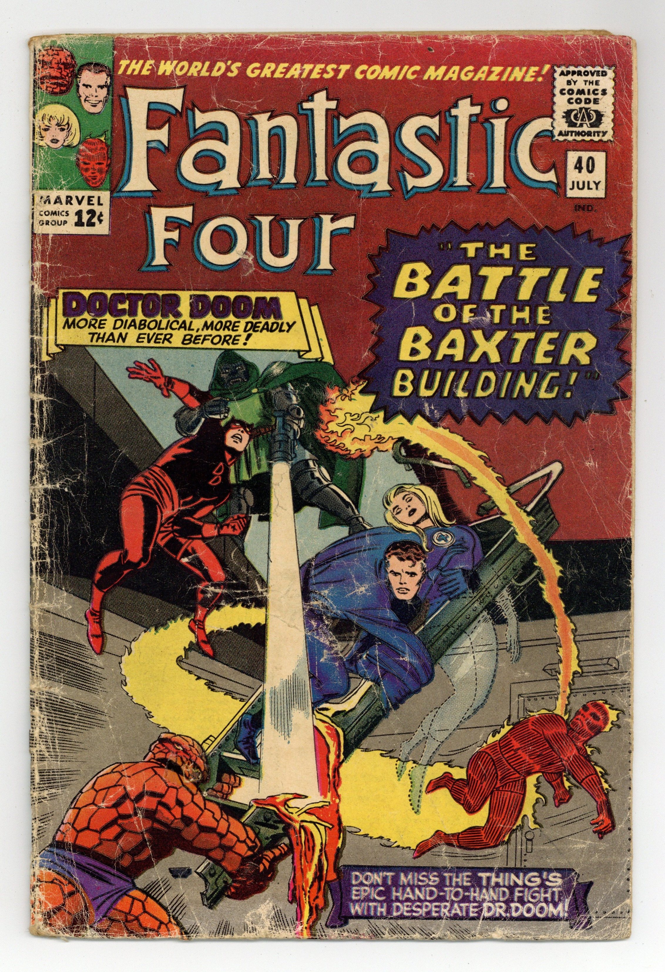 Cover pencils by Jack Kirby, inks by Frank Giacoia. The Battle of the Baxter Building, script by Stan Lee, pencils by Jack Kirby, inks by Vince Colletta; Dr. Doom battles the FF and Daredevil; Reed restores the FF's powers. 36 pgs. $0.12. Cover price $0.12.